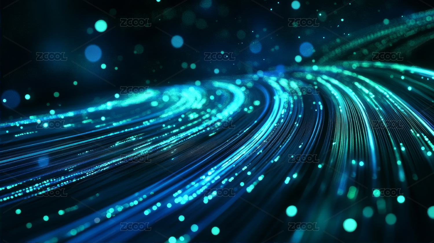 蓝色弯曲弧形放射状发光的光线科技线条背景