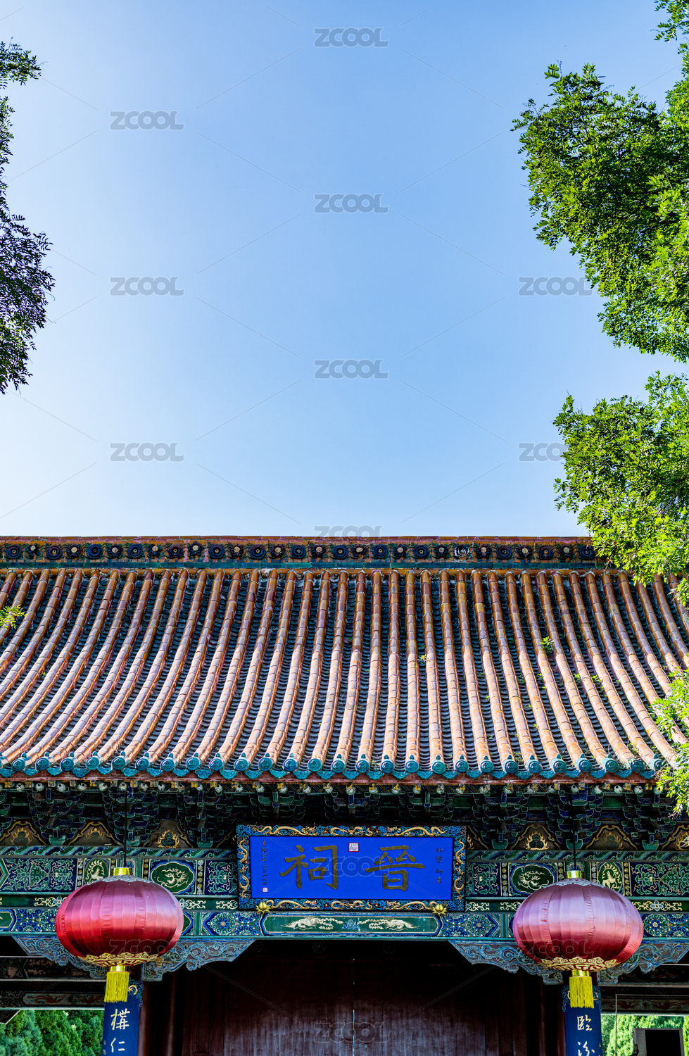 蓝天下的北京景山公园寿皇殿古建筑