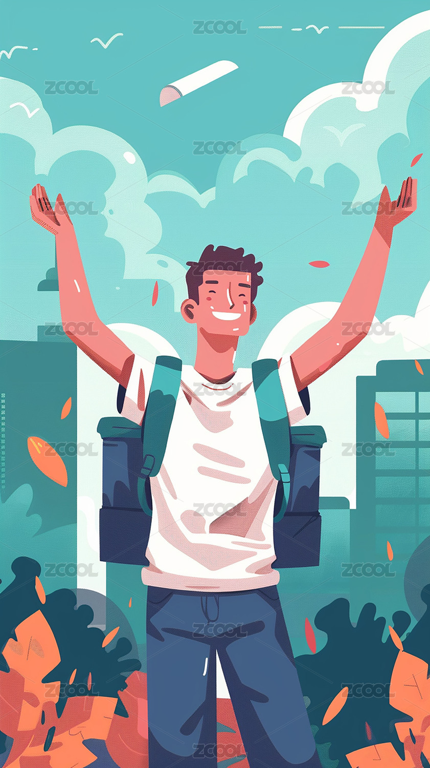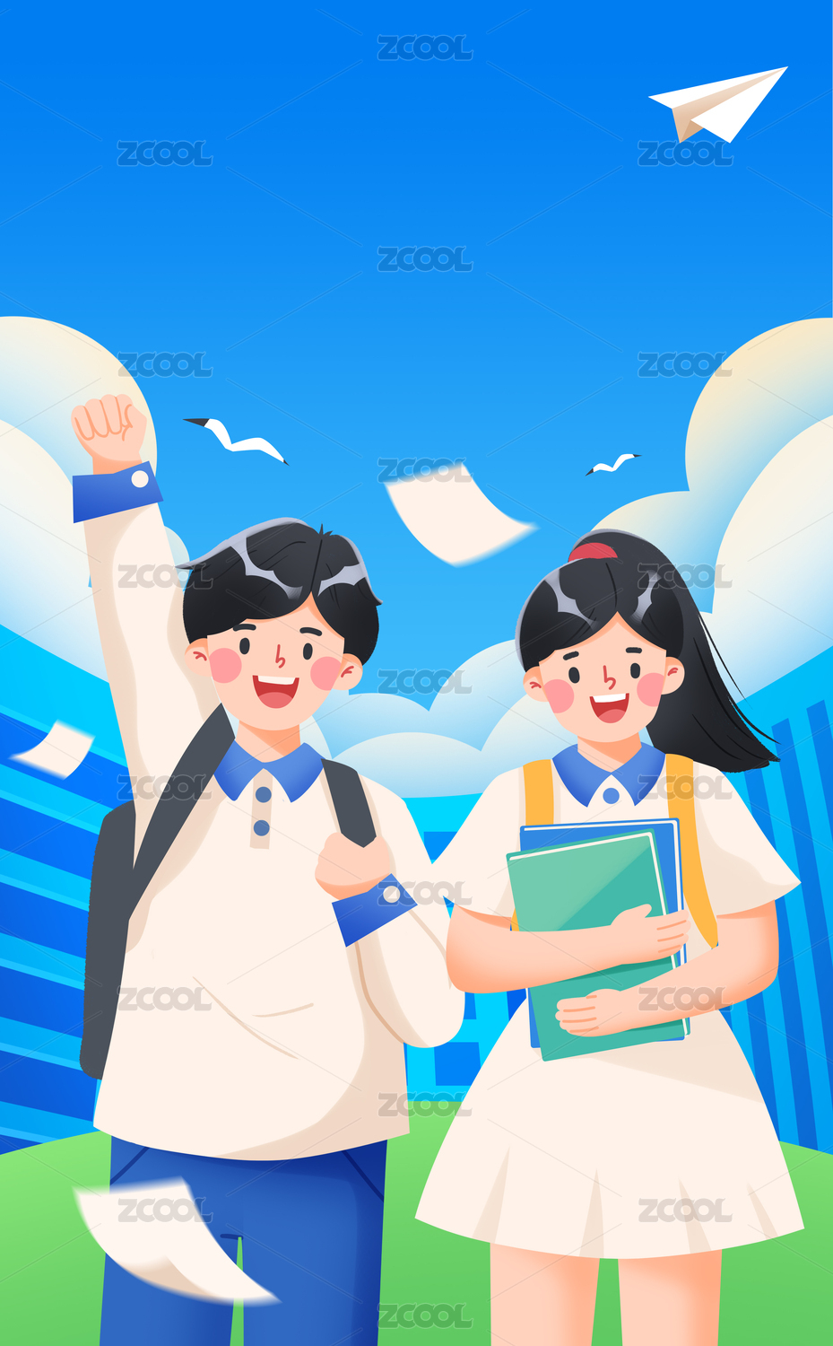 高考倒计时学生欢乐跳跃插画考试加油海报