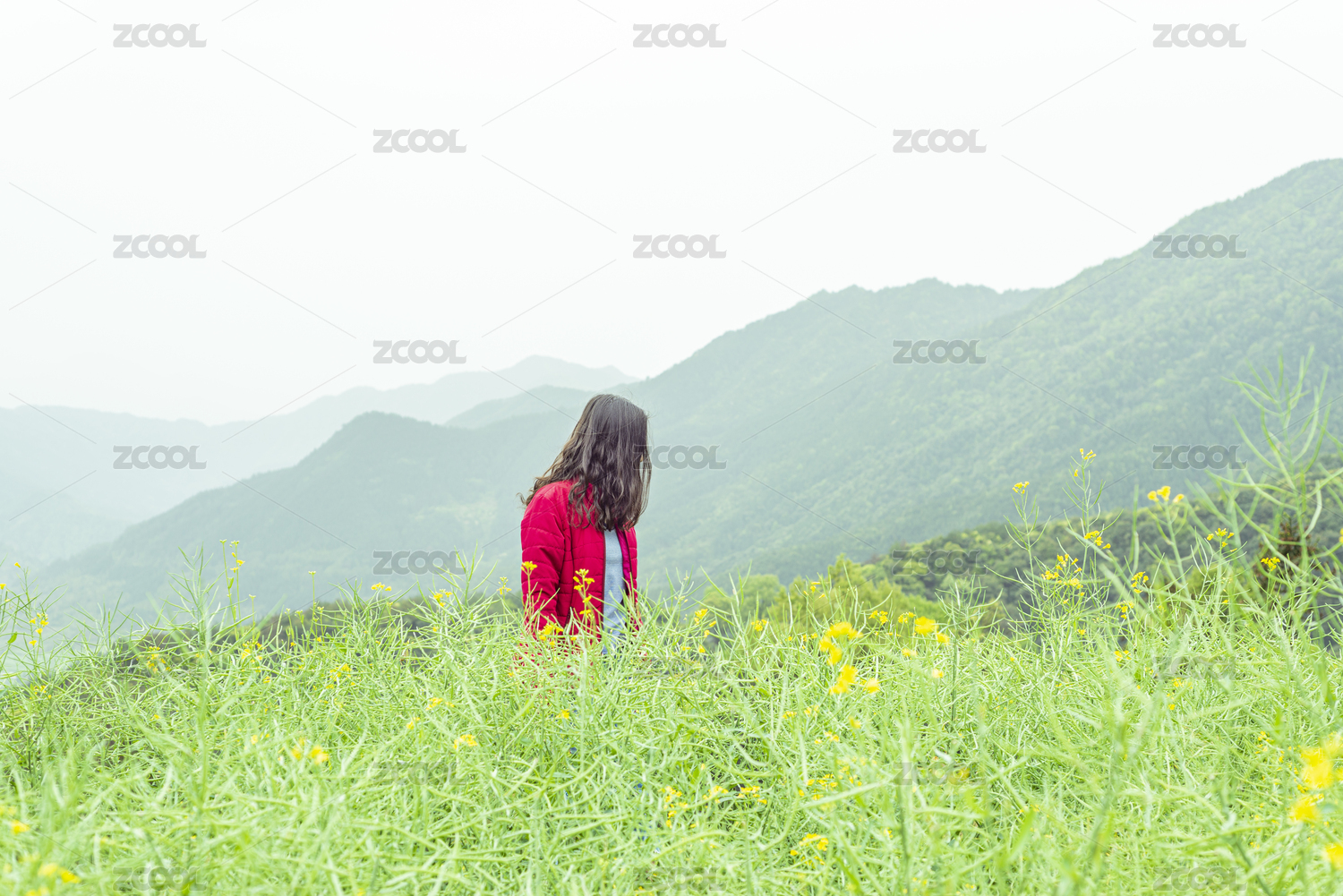春天里在江西婺源看油菜花的年轻女孩