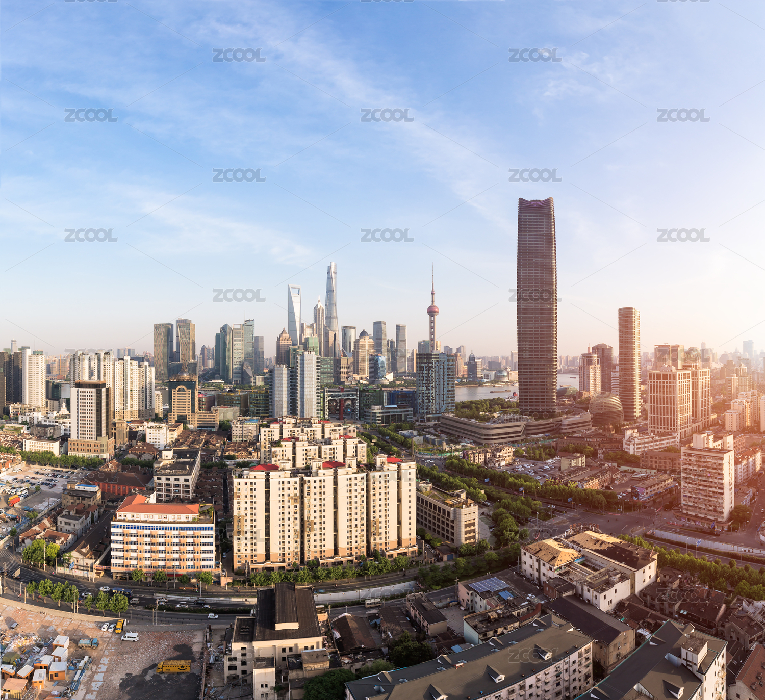 上海城市景观,高点拍摄的陆家嘴摩天大楼