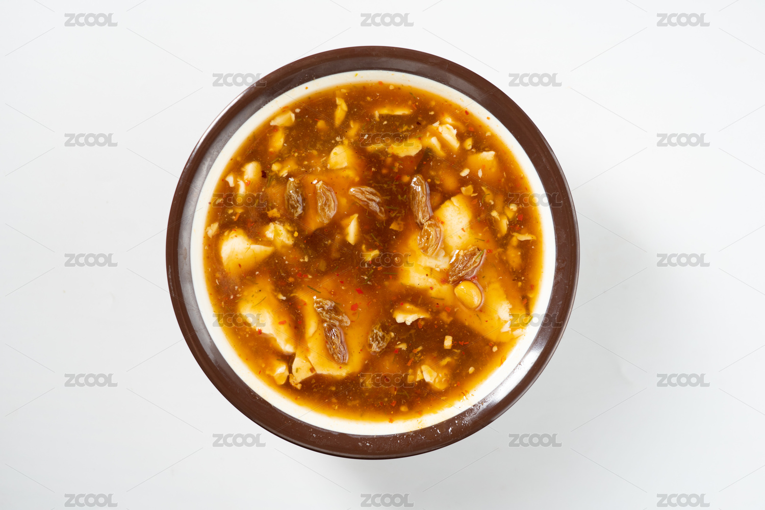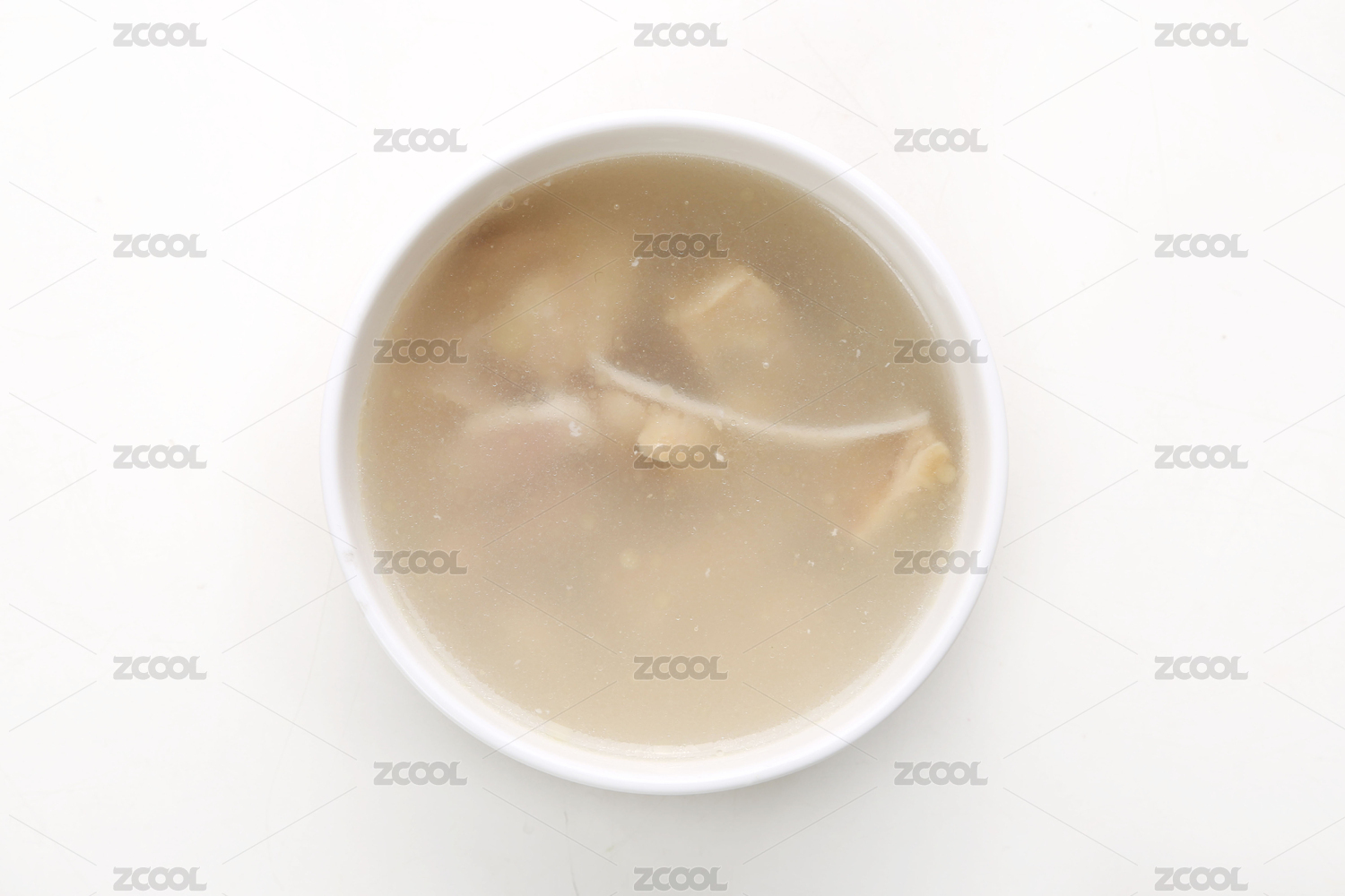 不锈钢汤锅装的火锅汤底山珍菌汤