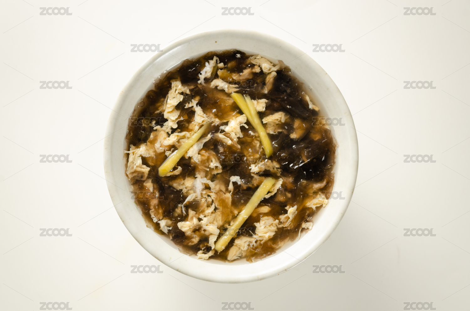 一碗家常快汤紫菜蛋花汤放在餐桌上