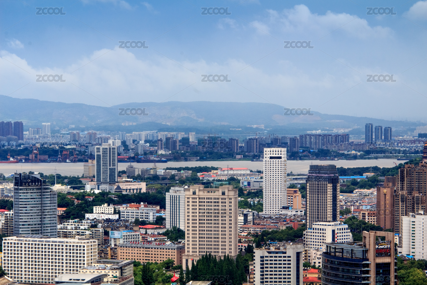 傍晚的辽宁省大连市天际线,摄于富国公园