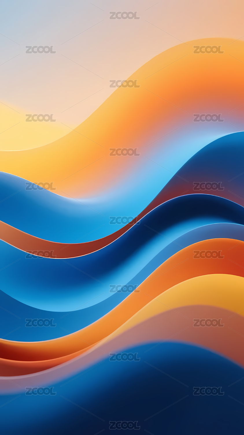 波浪,蓝色,橙色,流动,曲线,抽象,灯光,设计,水,线条