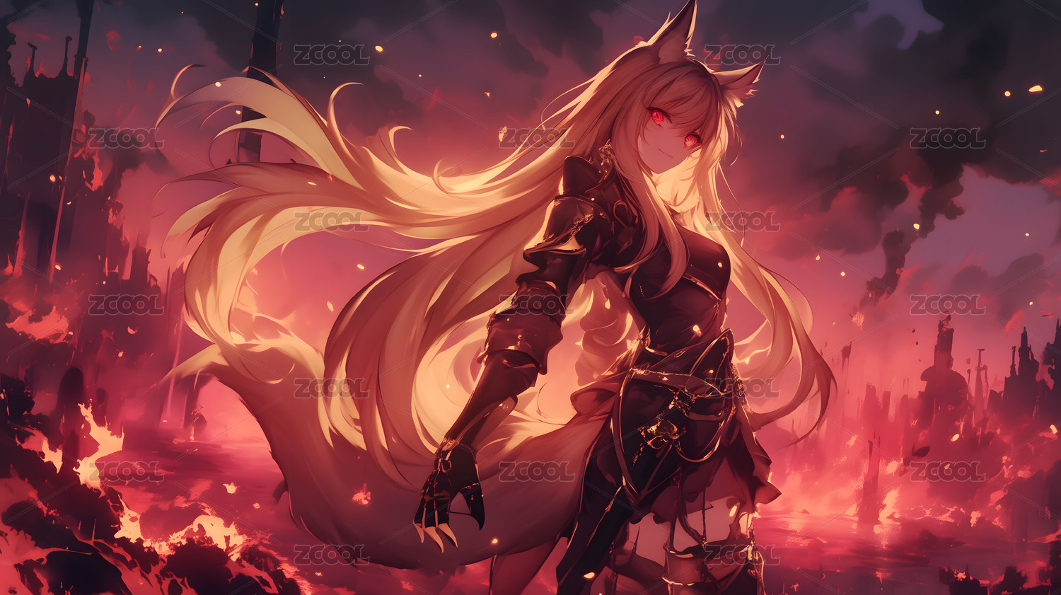 可爱的动漫女孩缤纷的色彩壁纸背景