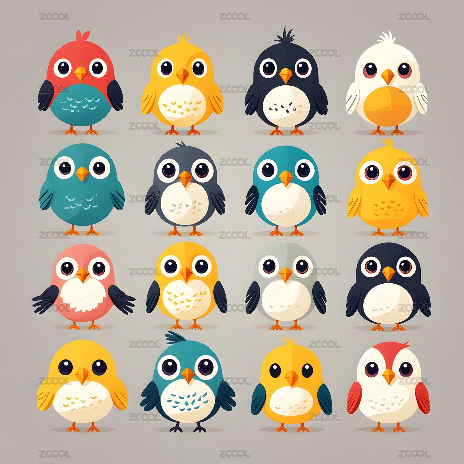 卡通动物手绘家畜牲畜鸡狗猫猪鸟
