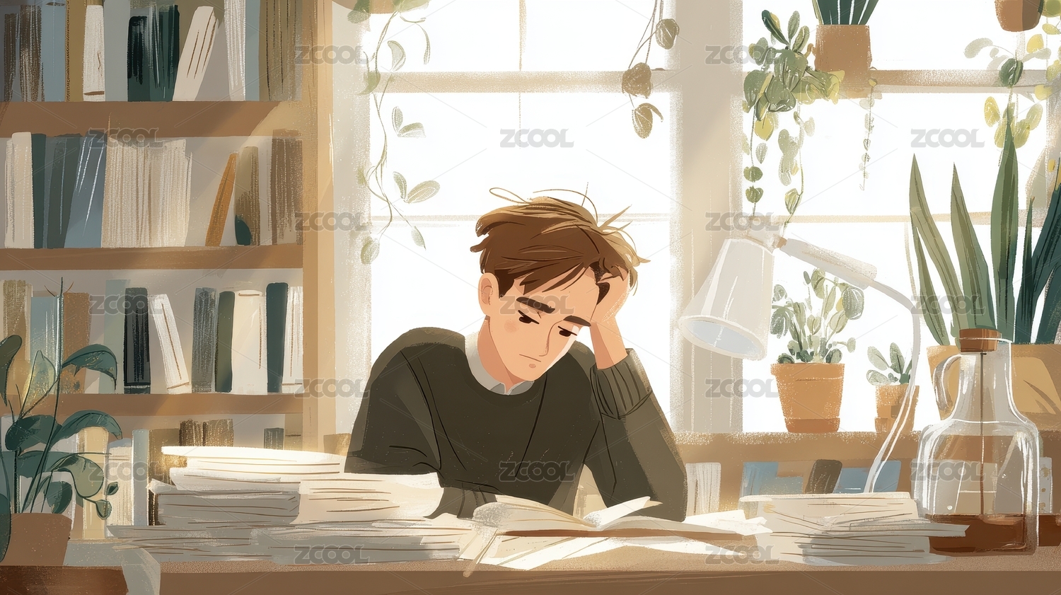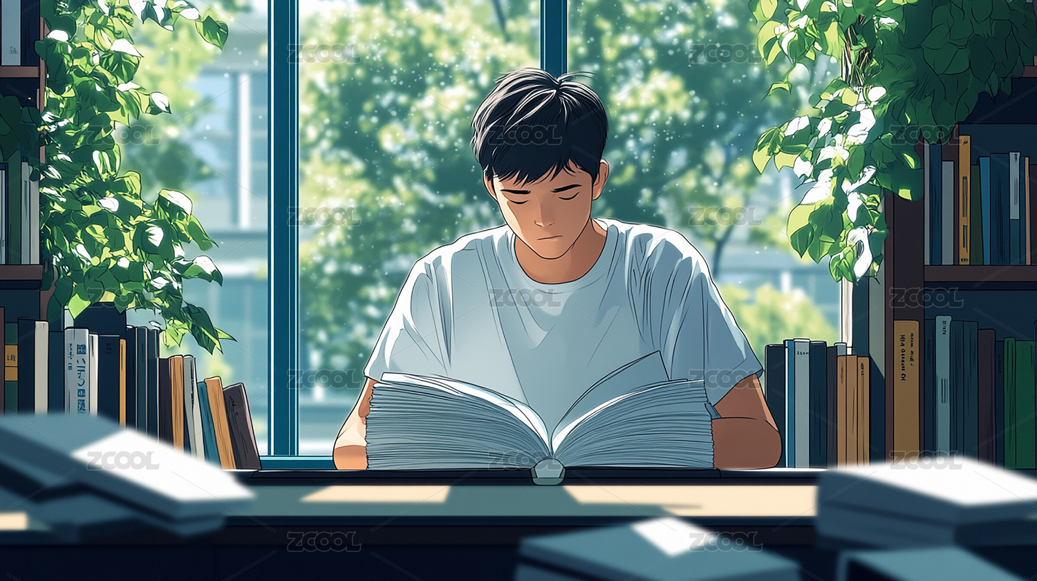 看书,阅读,学习,休闲,男孩,男性,少年,读书,书桌,卡通