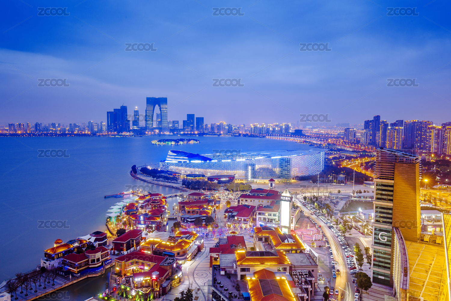 苏州市,金鸡湖,工业园区,日落,东方之门,月光码头,城市,建筑,风光,景观