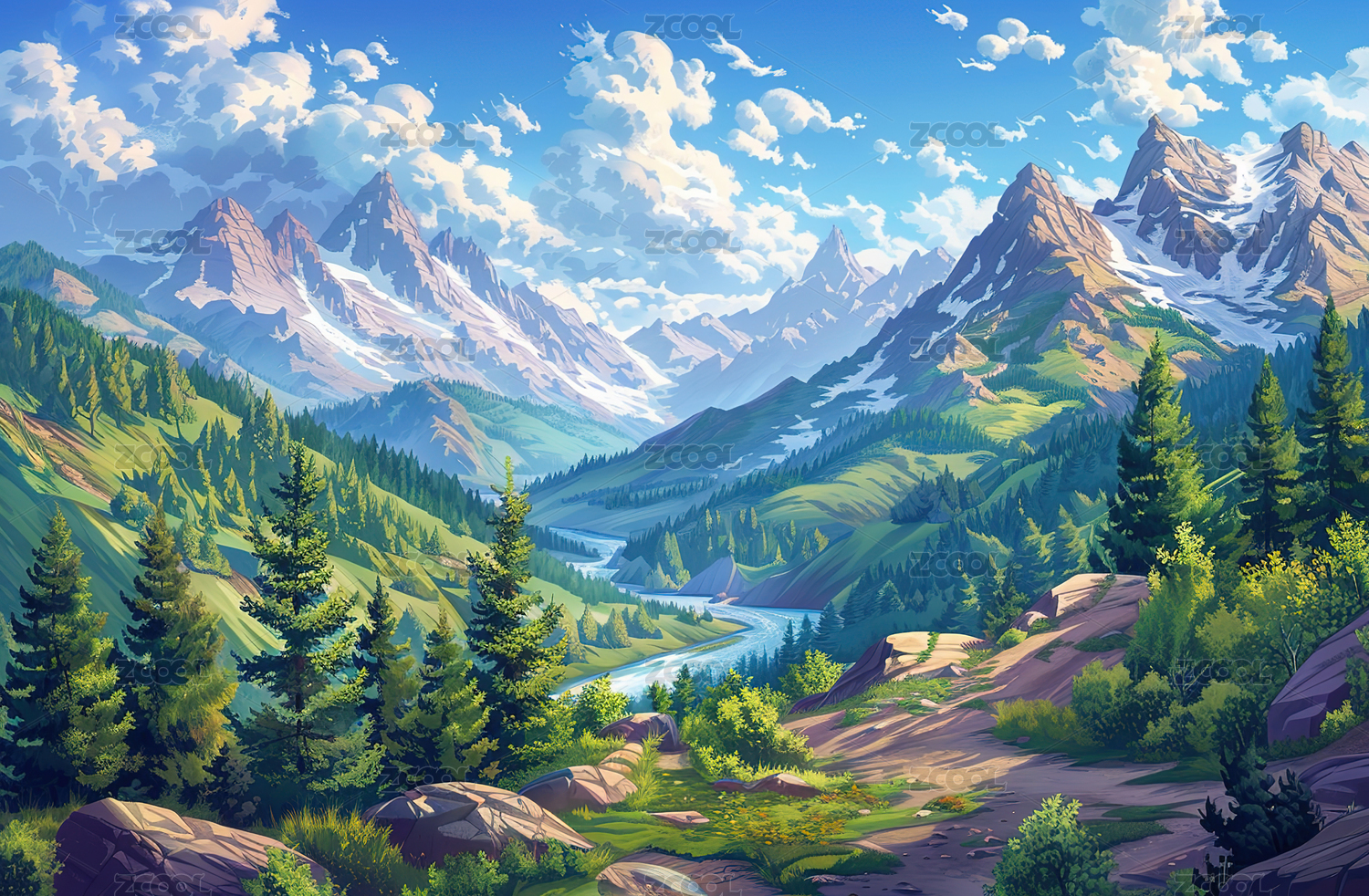 山水,湖泊,风景,树木,草地,云朵,山峰,倒影,绿色,自然