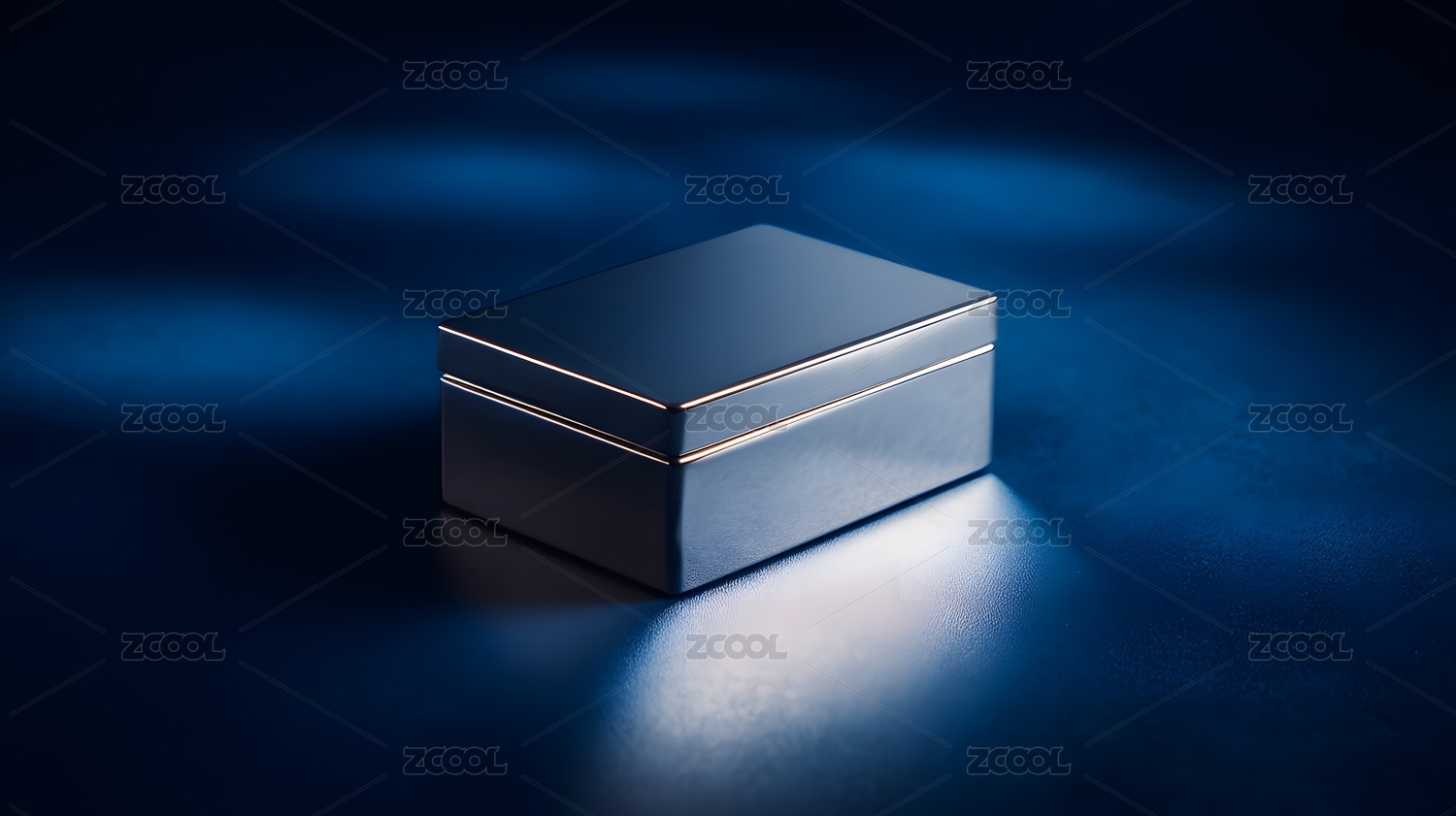 深色金属盒子置于蓝色背景中