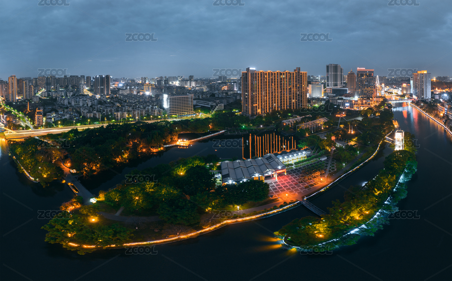 中国广东省东莞市中心广场夜景