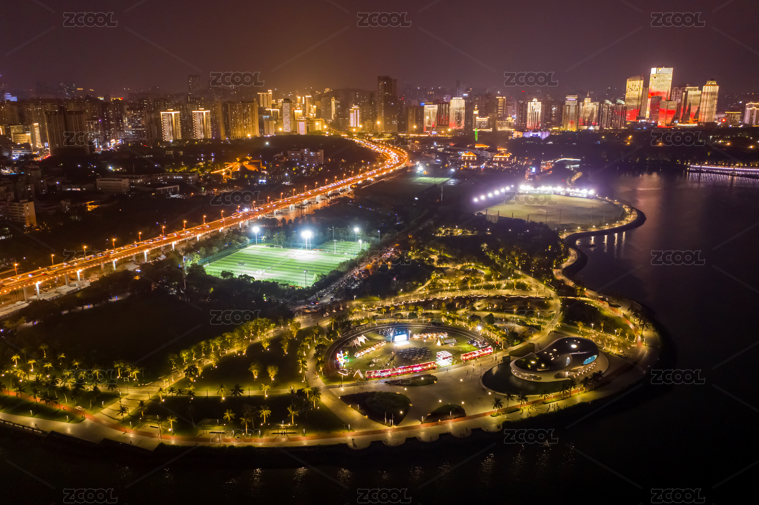 海南,海口,海口湾,海甸河,海口世纪公园音乐广场,航拍,地标,旅游目的地,景点,海口音乐广场