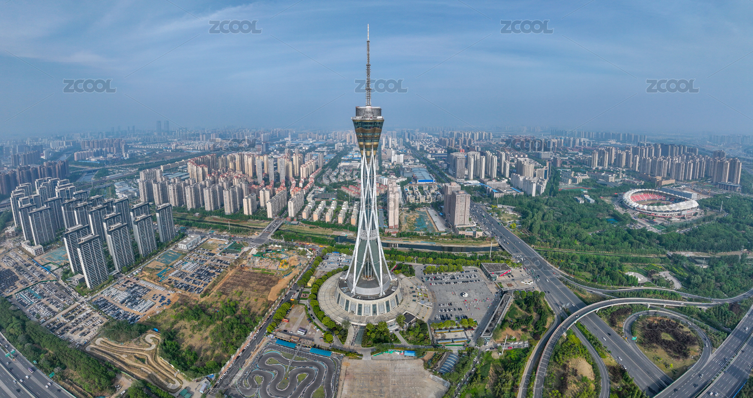 中国河南省郑州市中原福塔航拍图