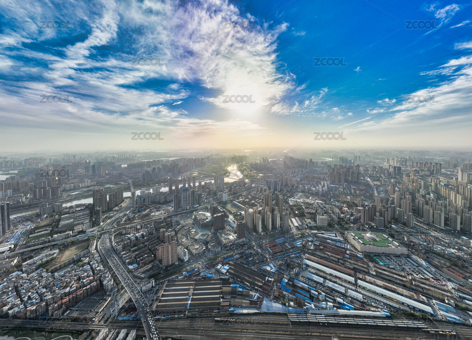 航拍郑州农业路大桥城市快速路高架桥天际线