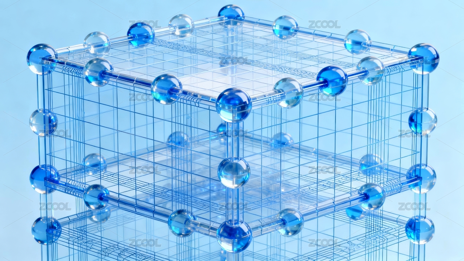 蓝色,发光,立方体,透明,网格,结构,科技,未来,抽象,几何