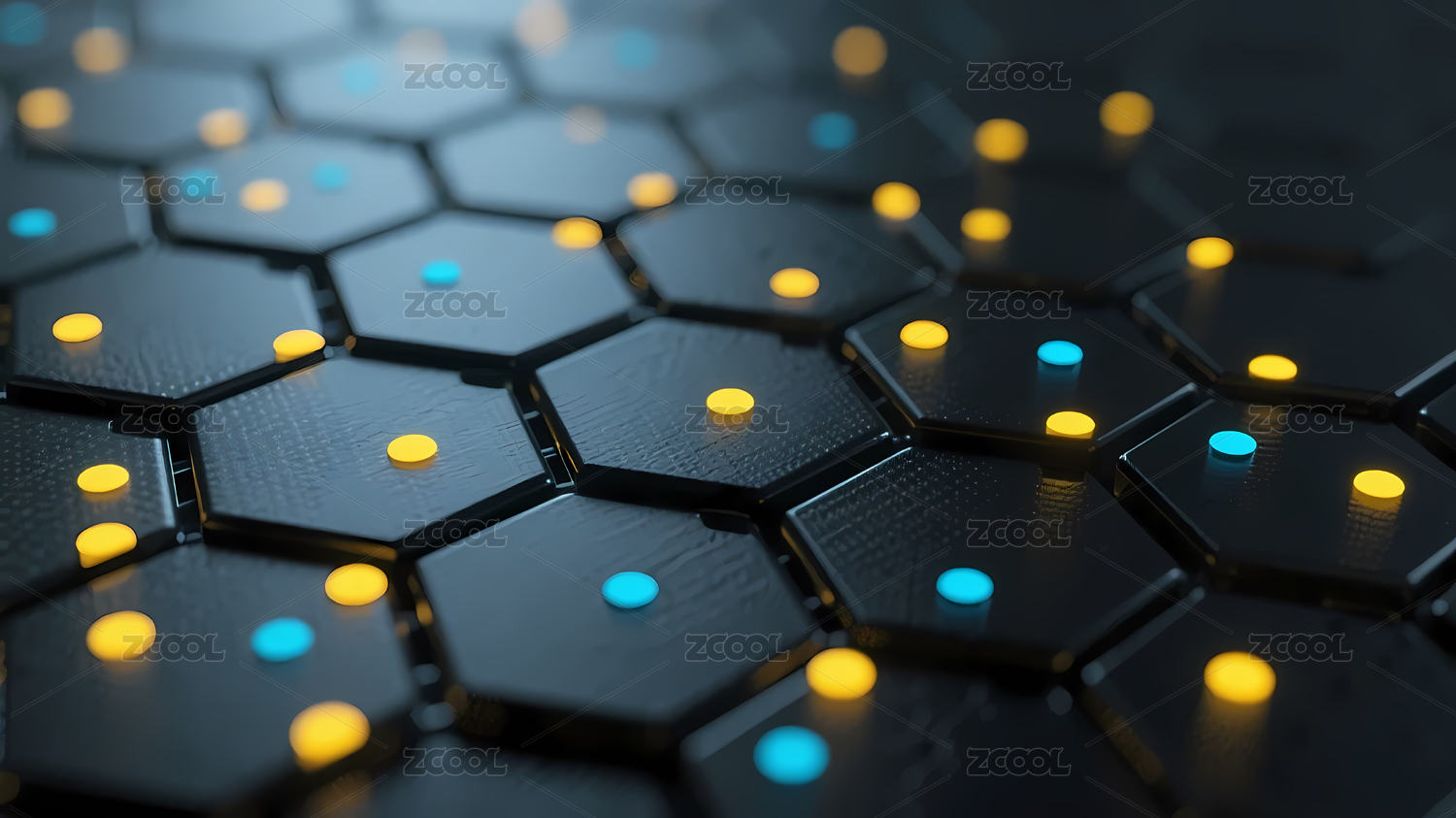 黑色六边形网格蓝黄点