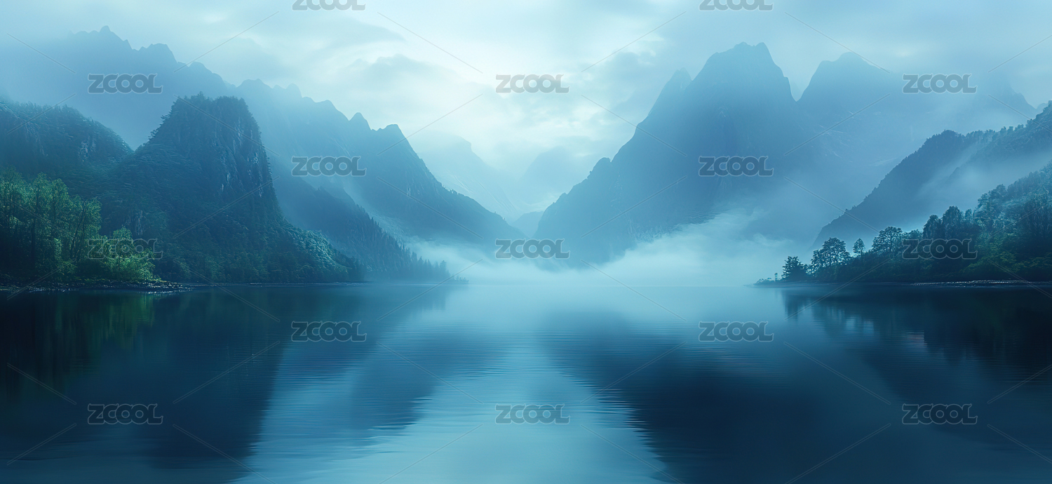 雾绕山水间