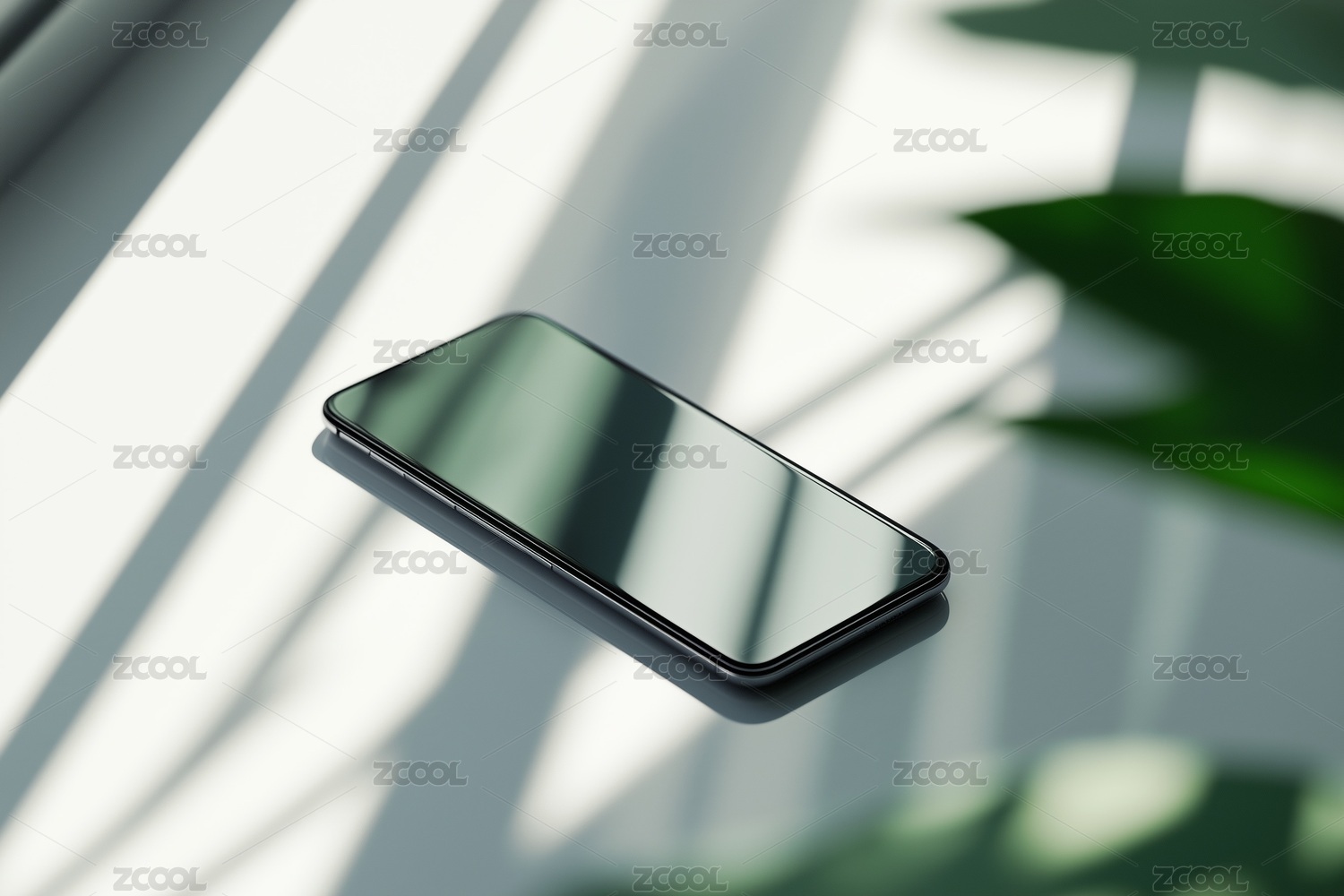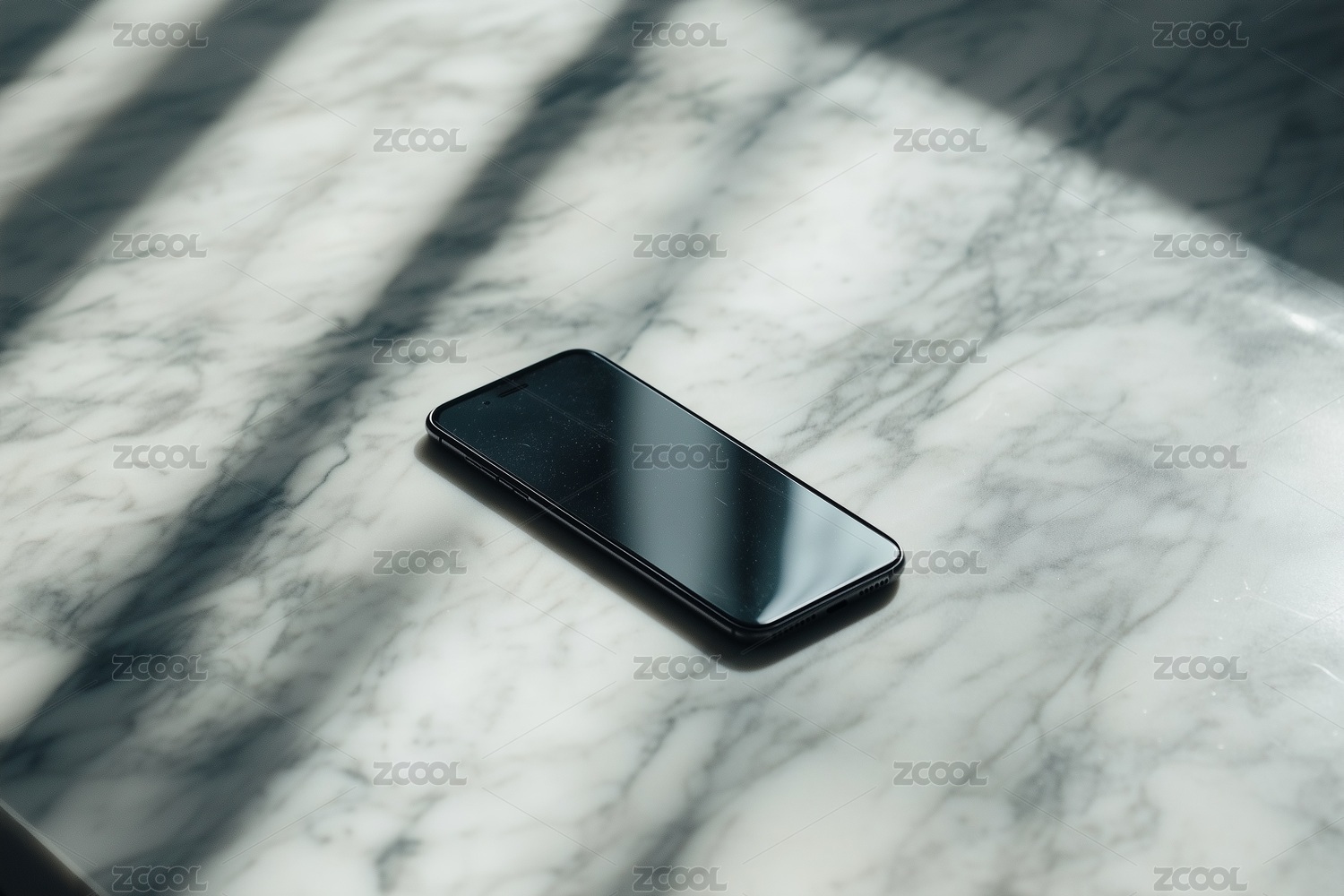 智能手机,桌面,光线,反射,屏幕,黑色,边框,金属,质感,摄影