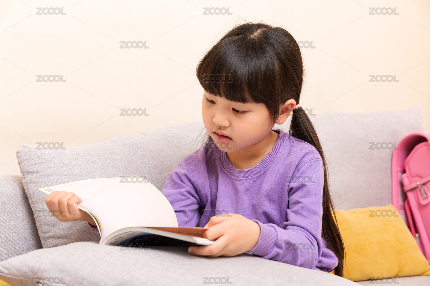 儿童,教育,小学生,小女孩,可爱,学习,读书,看书,室内,沙发