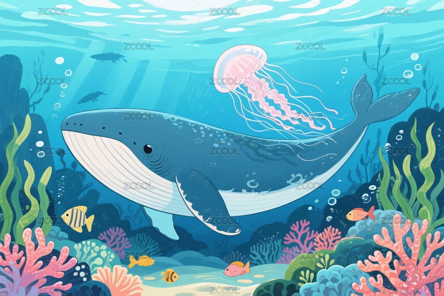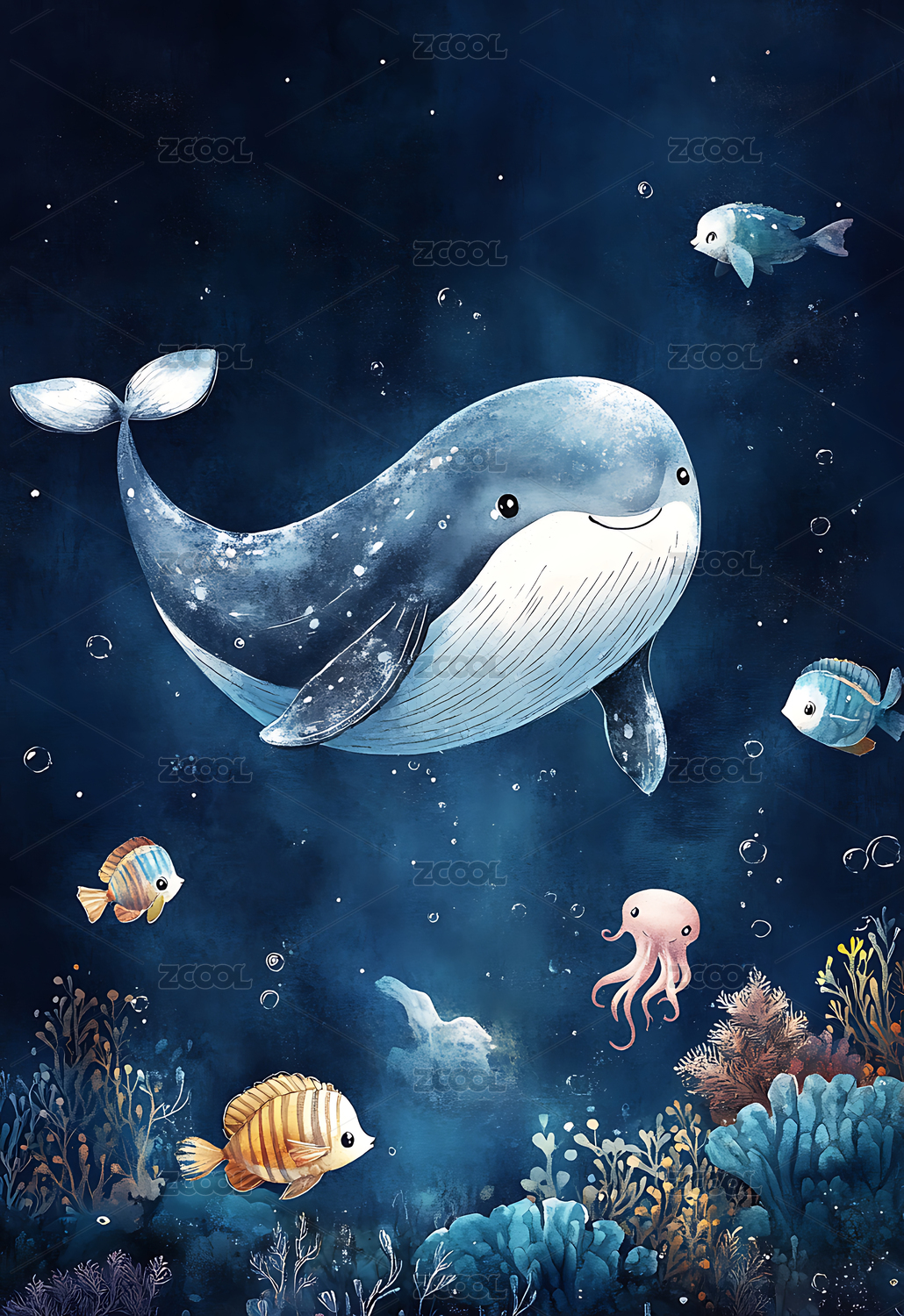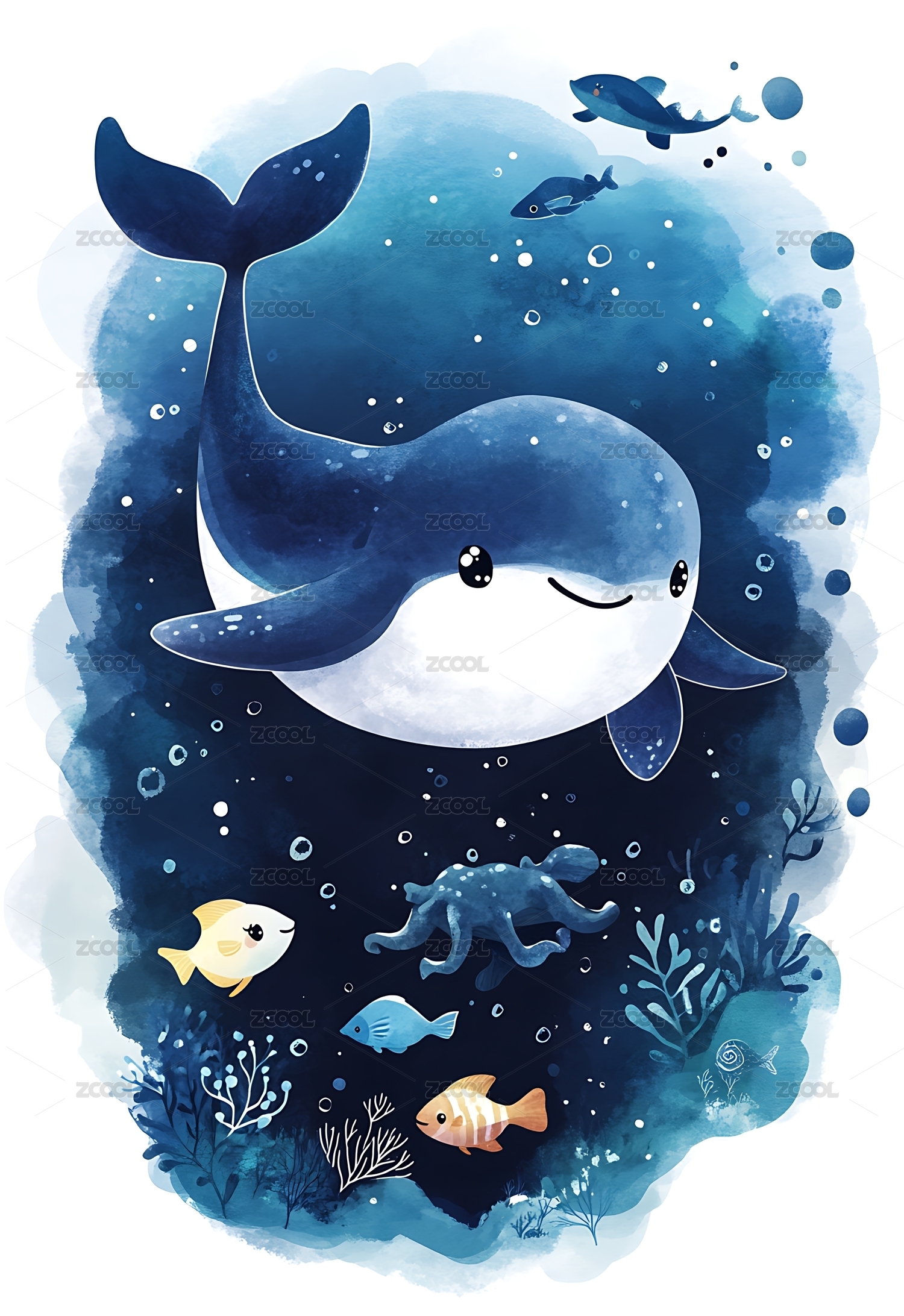 海底鲸鱼儿童插画