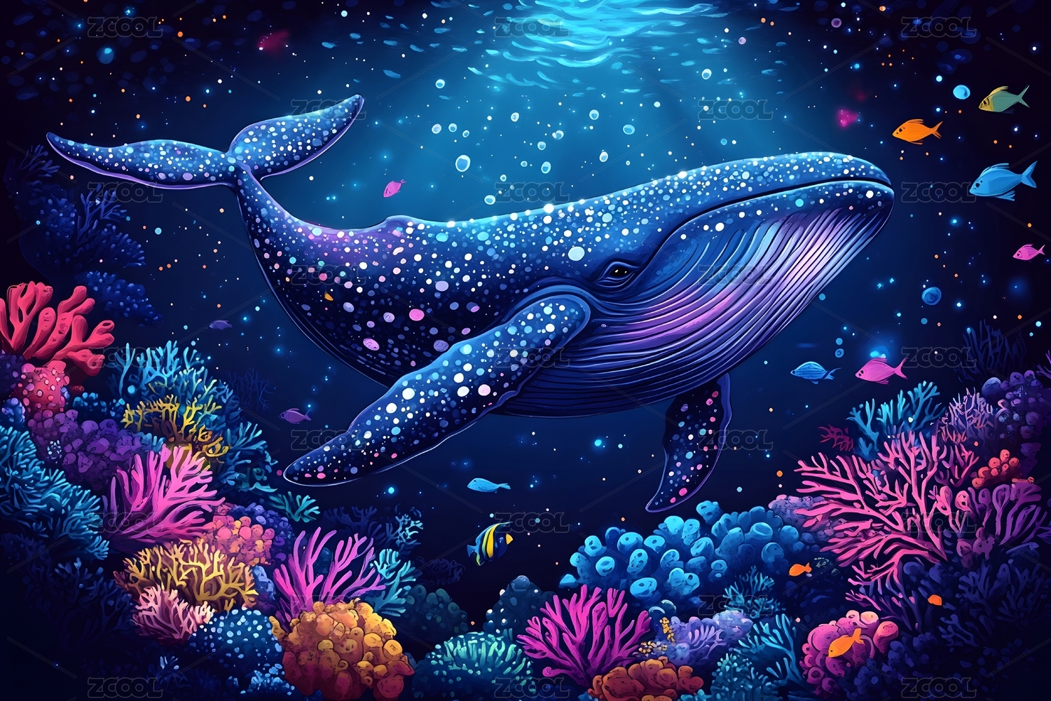 深邃海底中的优雅鲸鱼
