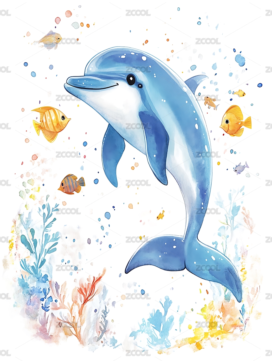 水彩风海豚插画