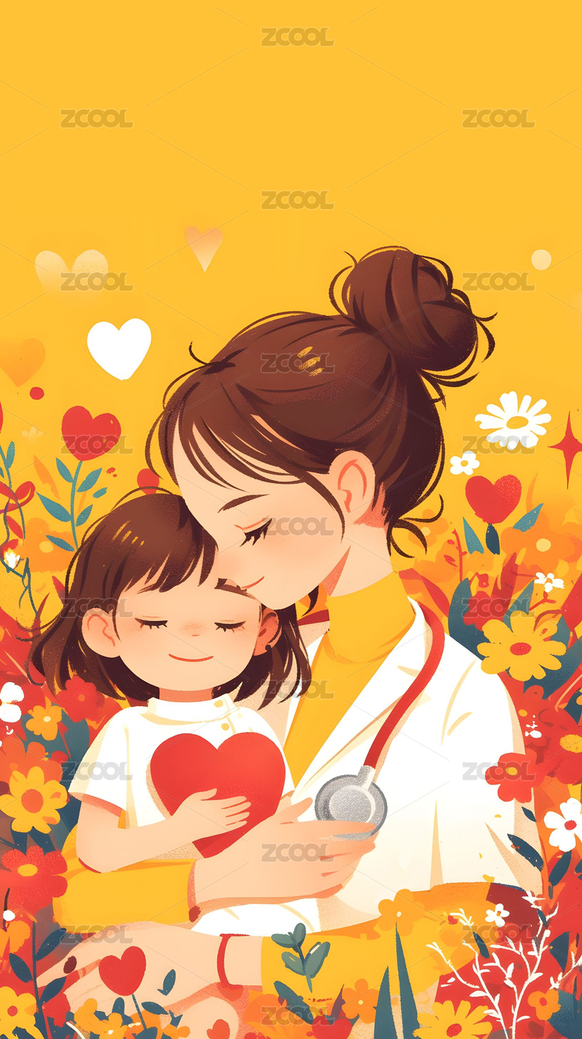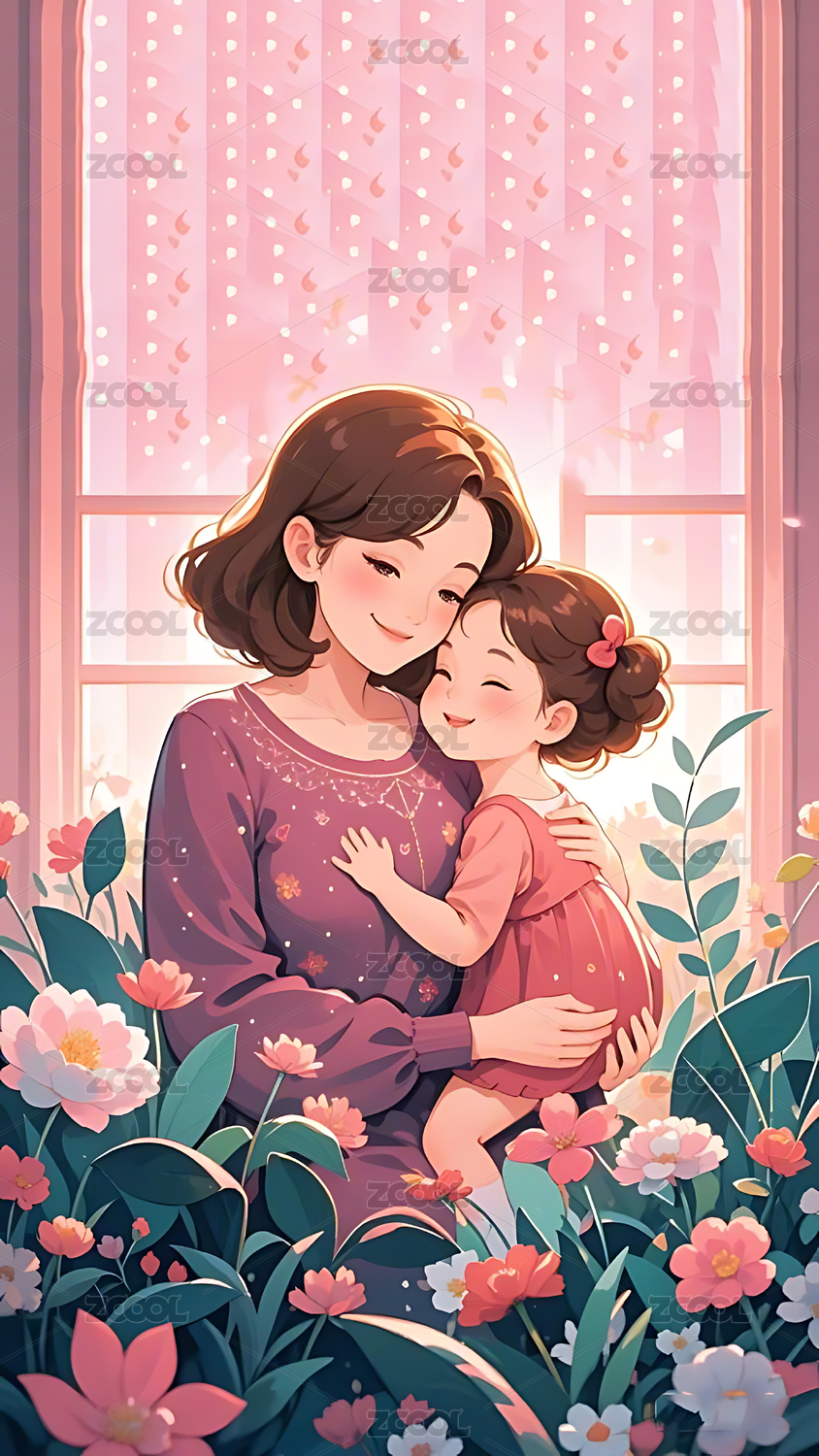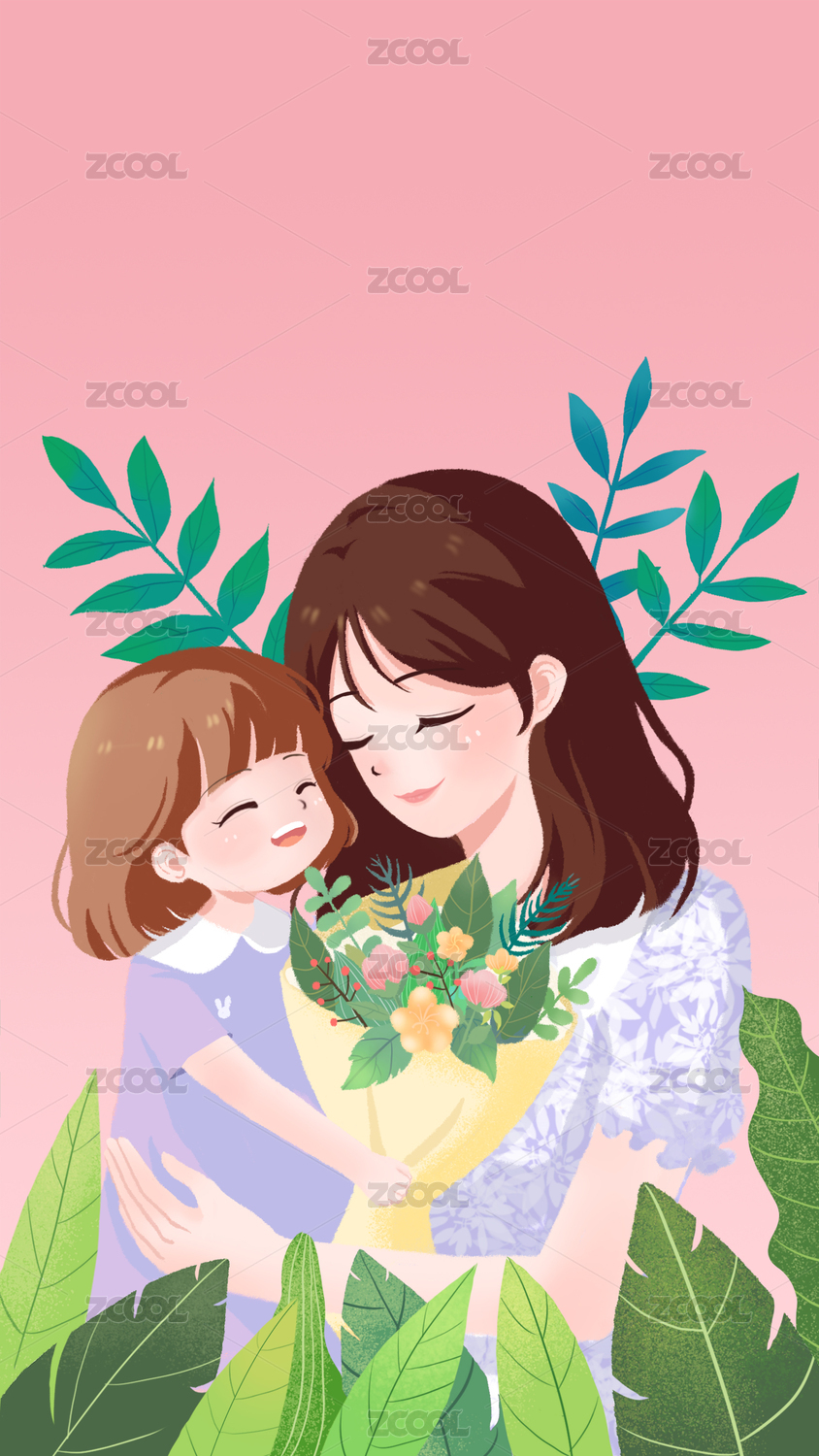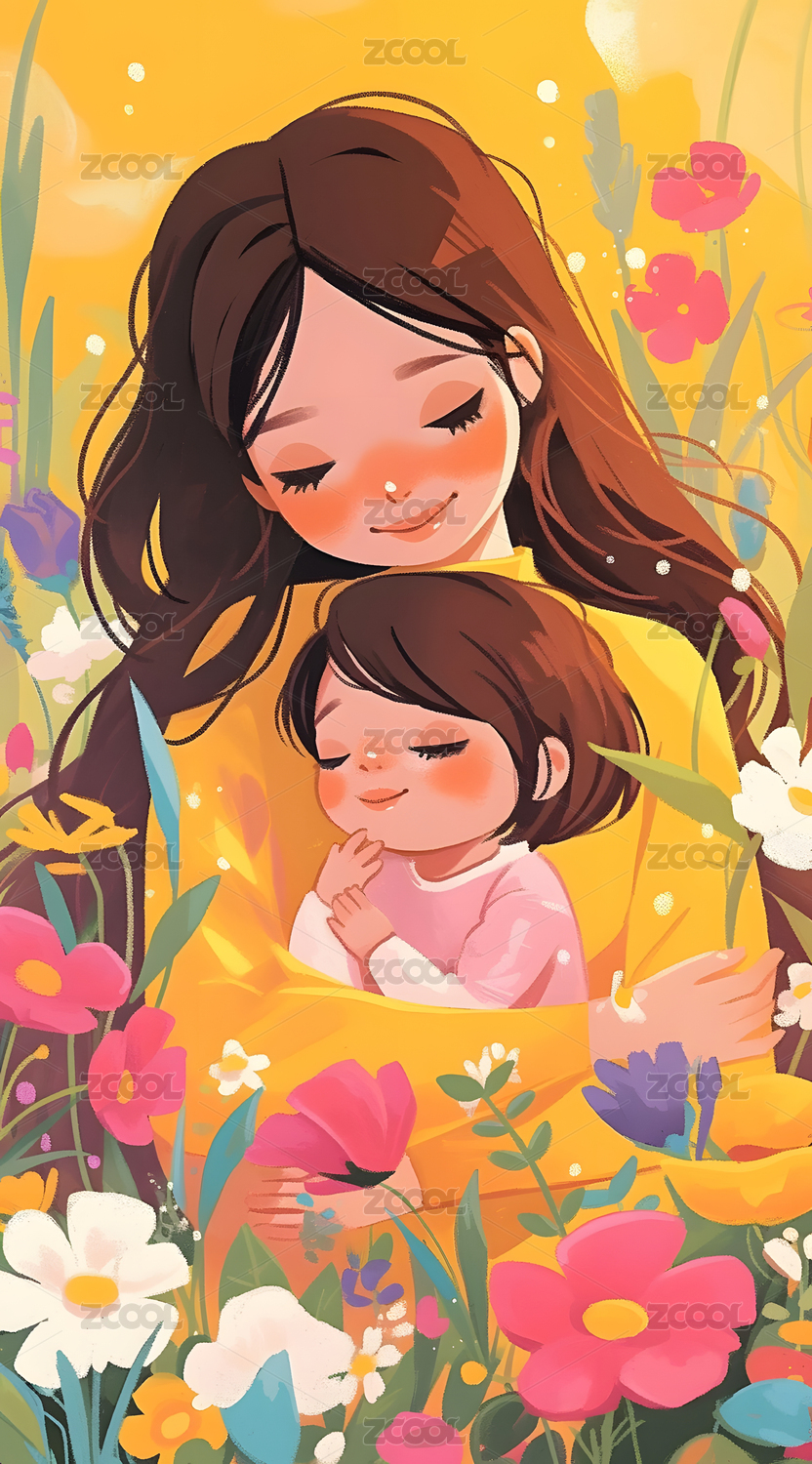 母亲节 插画 母女