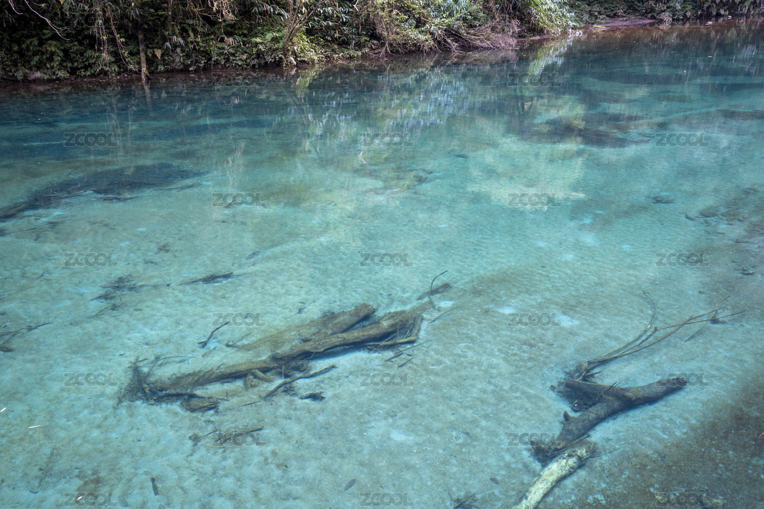 中国四川阿坝茂县松坪沟五彩池的清澈的翡翠般的水