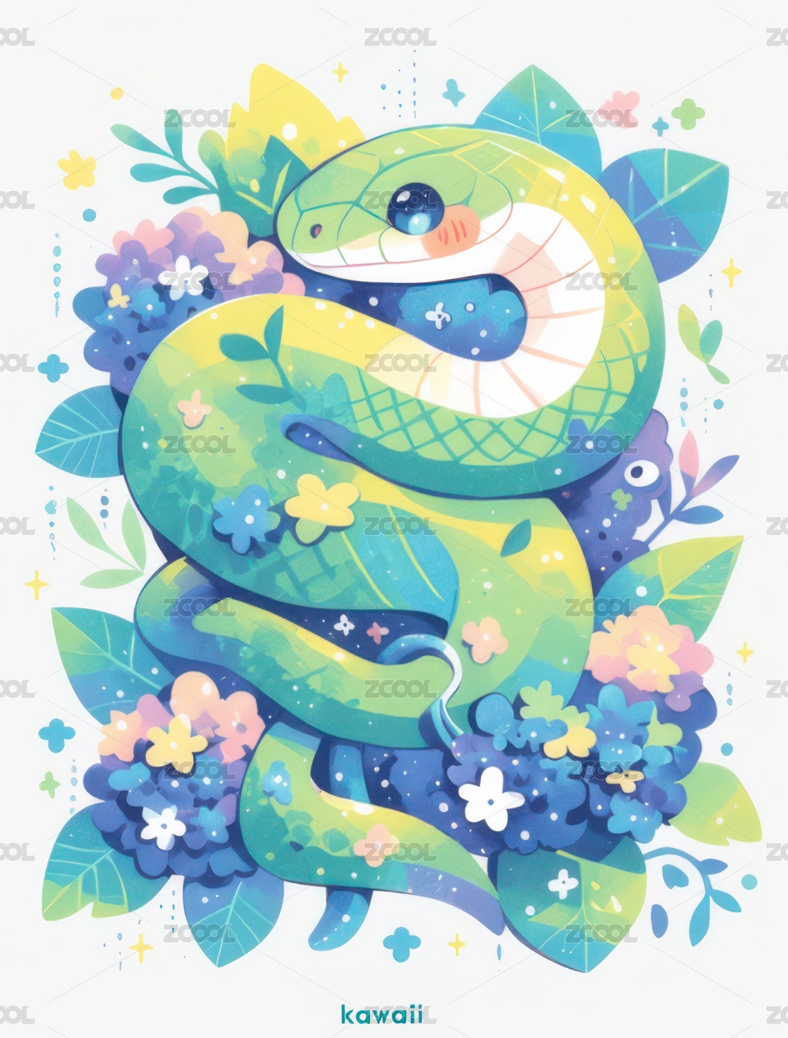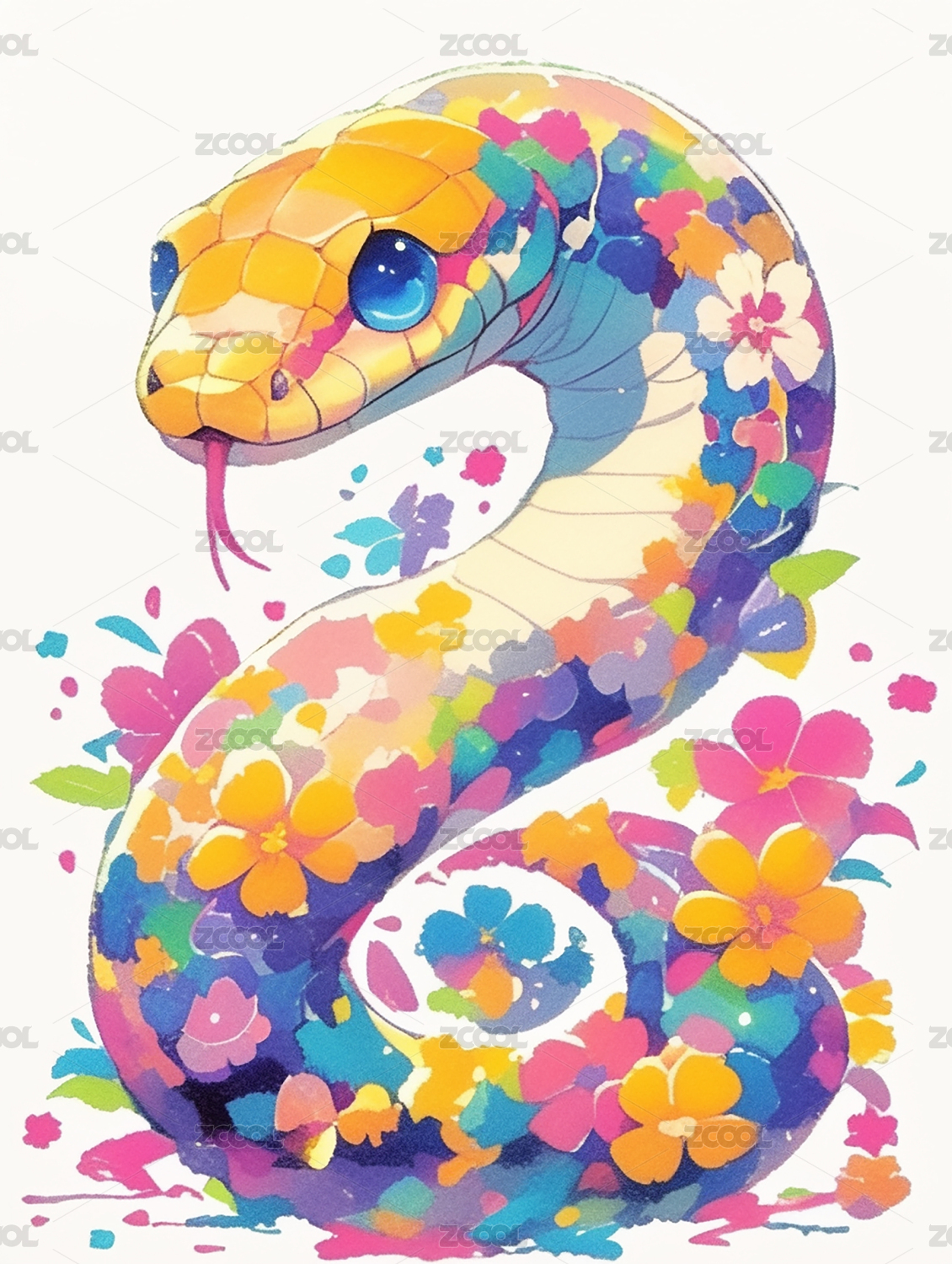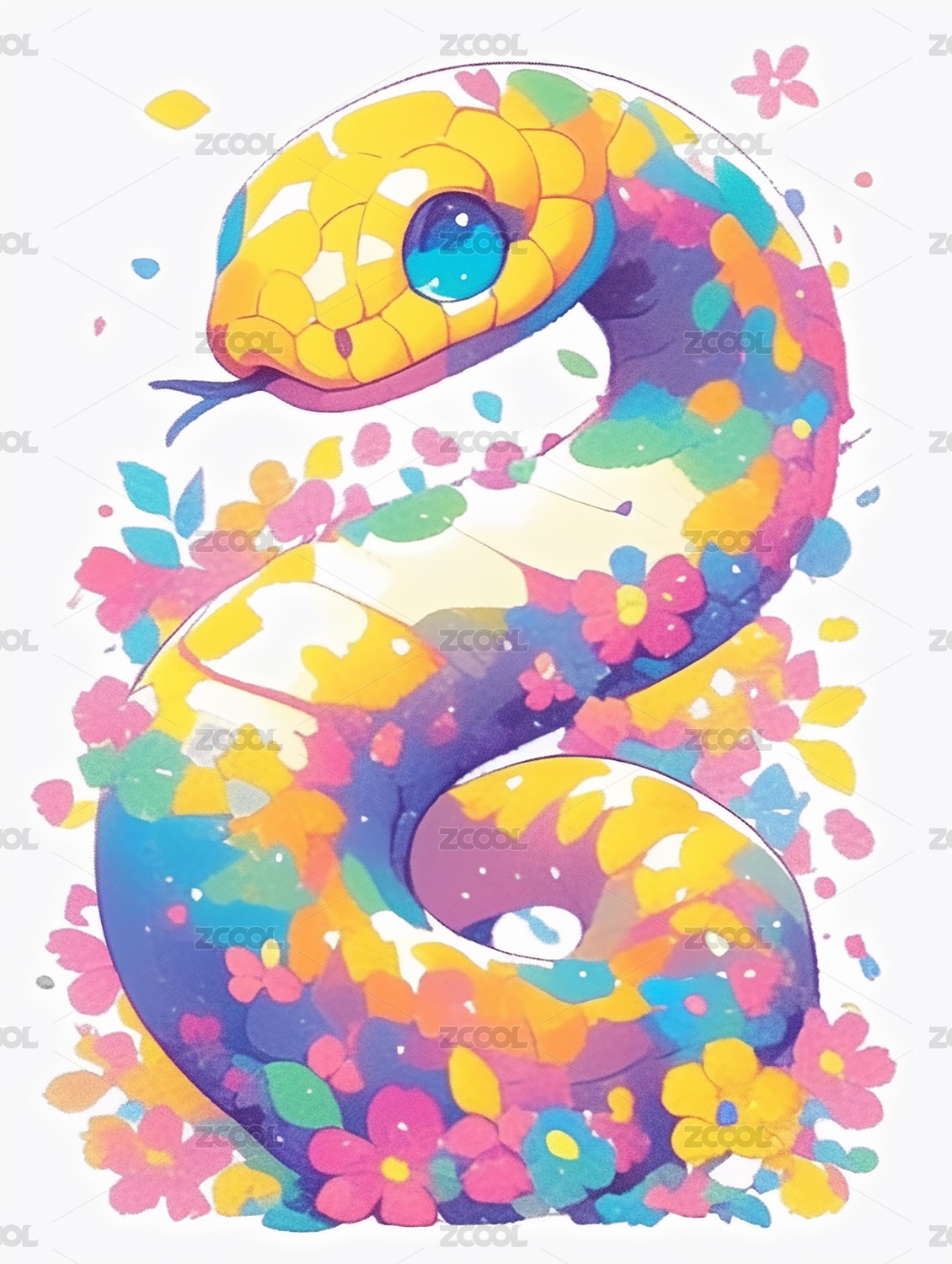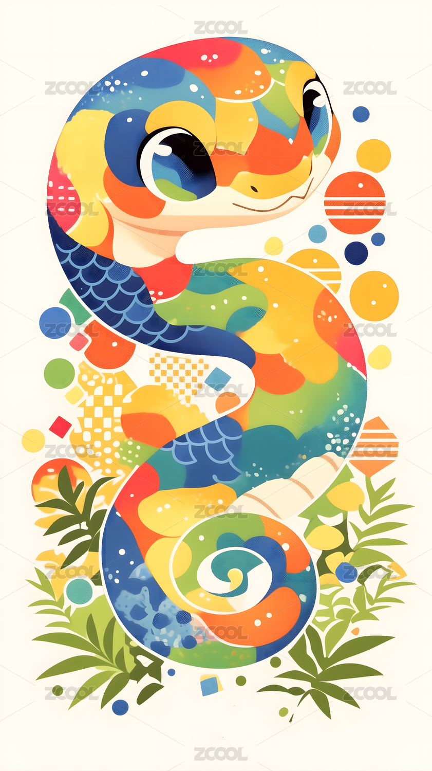 多彩,小蛇,蛇年,蛇,2025,可爱,卡通,蛇年IP,吉祥物,彩色
