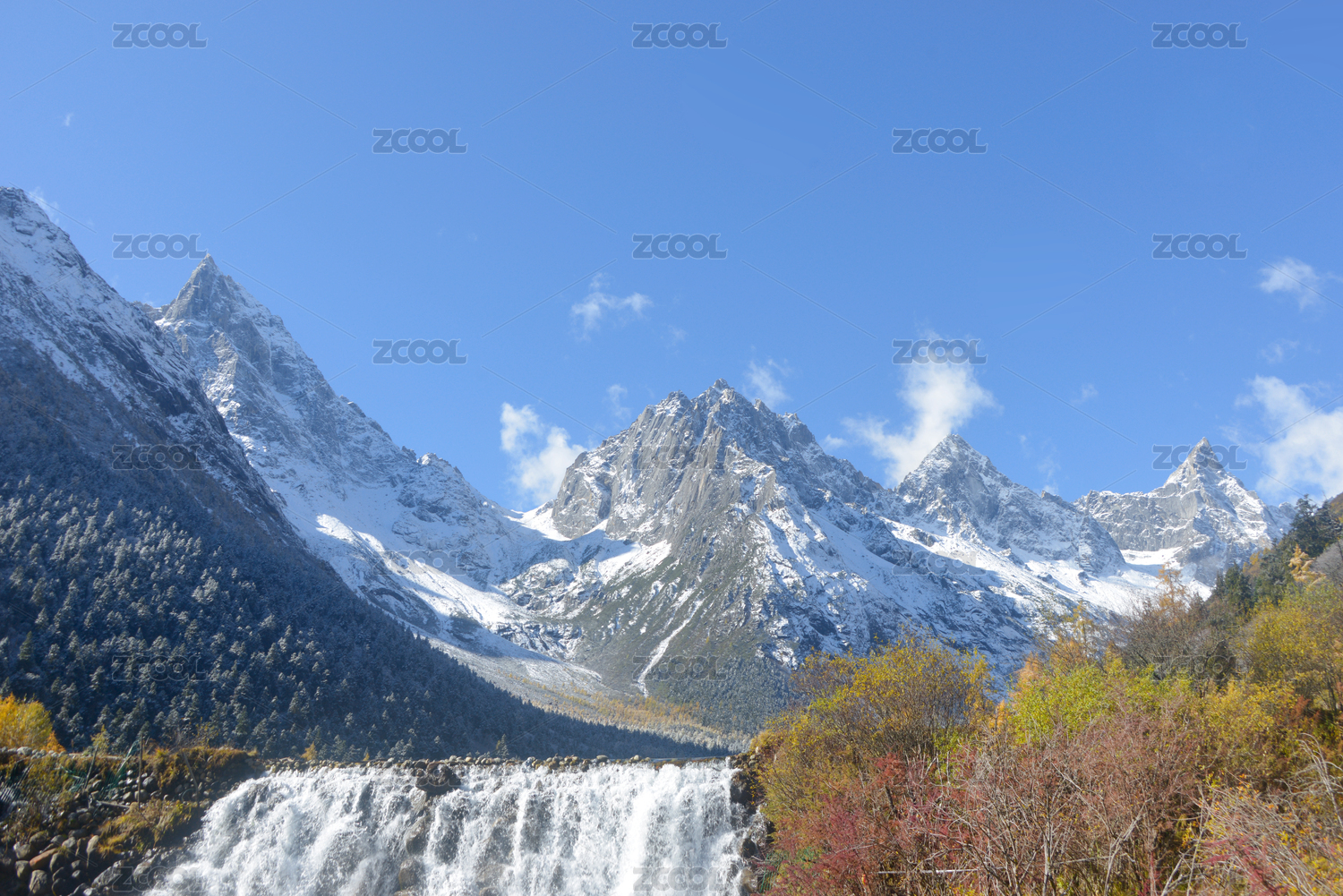 川西毕棚沟磐羊湖海子瀑布及冰川雪山