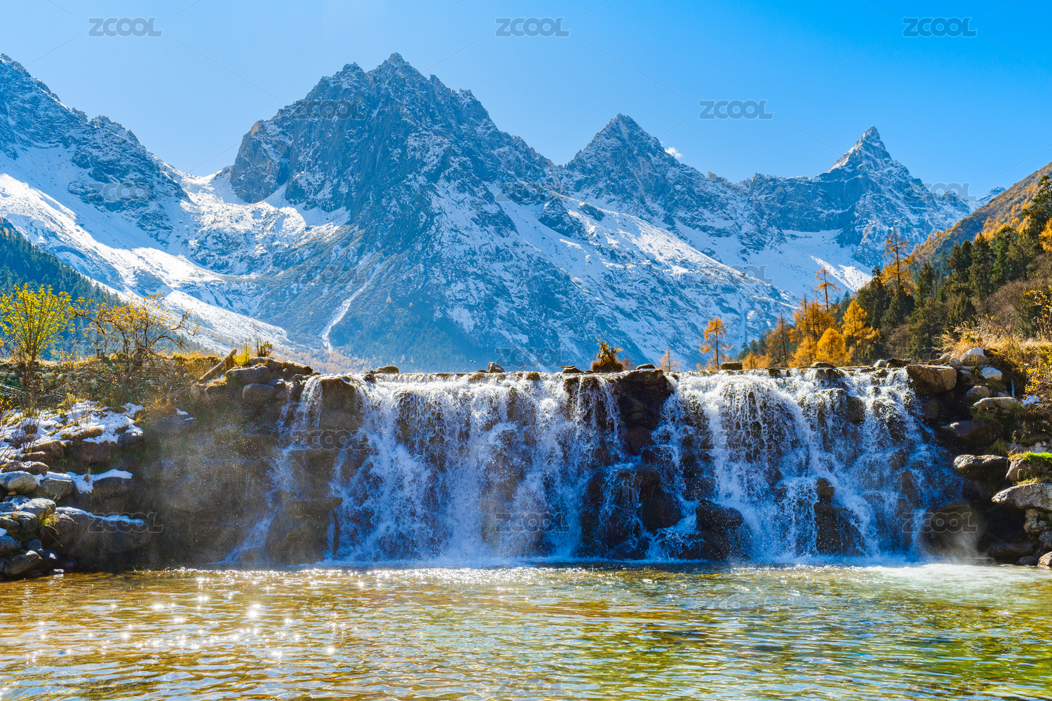 中国四川省阿坝州理县毕棚沟盘羊湖瀑布