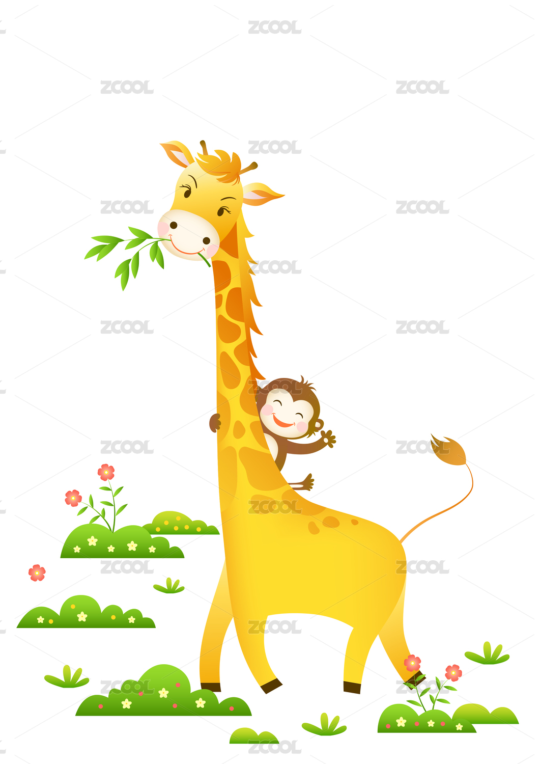 卡通长颈鹿与猴子