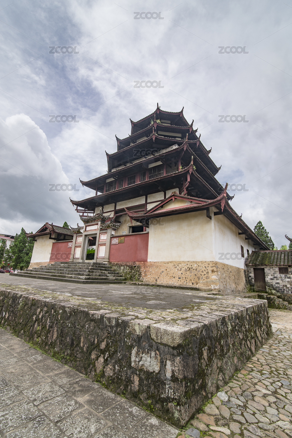 仰拍蛟洋文昌阁侧面,中国福建上杭