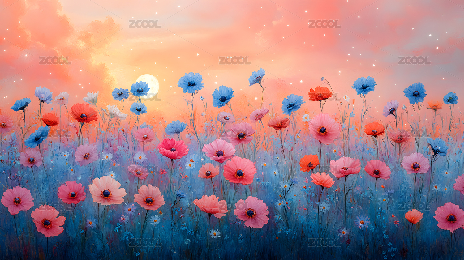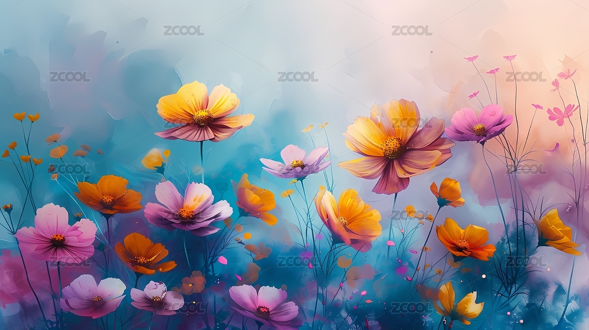 水彩,绘画,蓝色,黄色,紫色,花朵,渐变,抽象,几何,图形