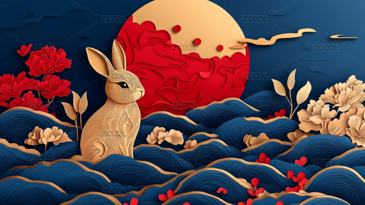 中国风剪纸写实动物纸雕手工艺十二生肖兔