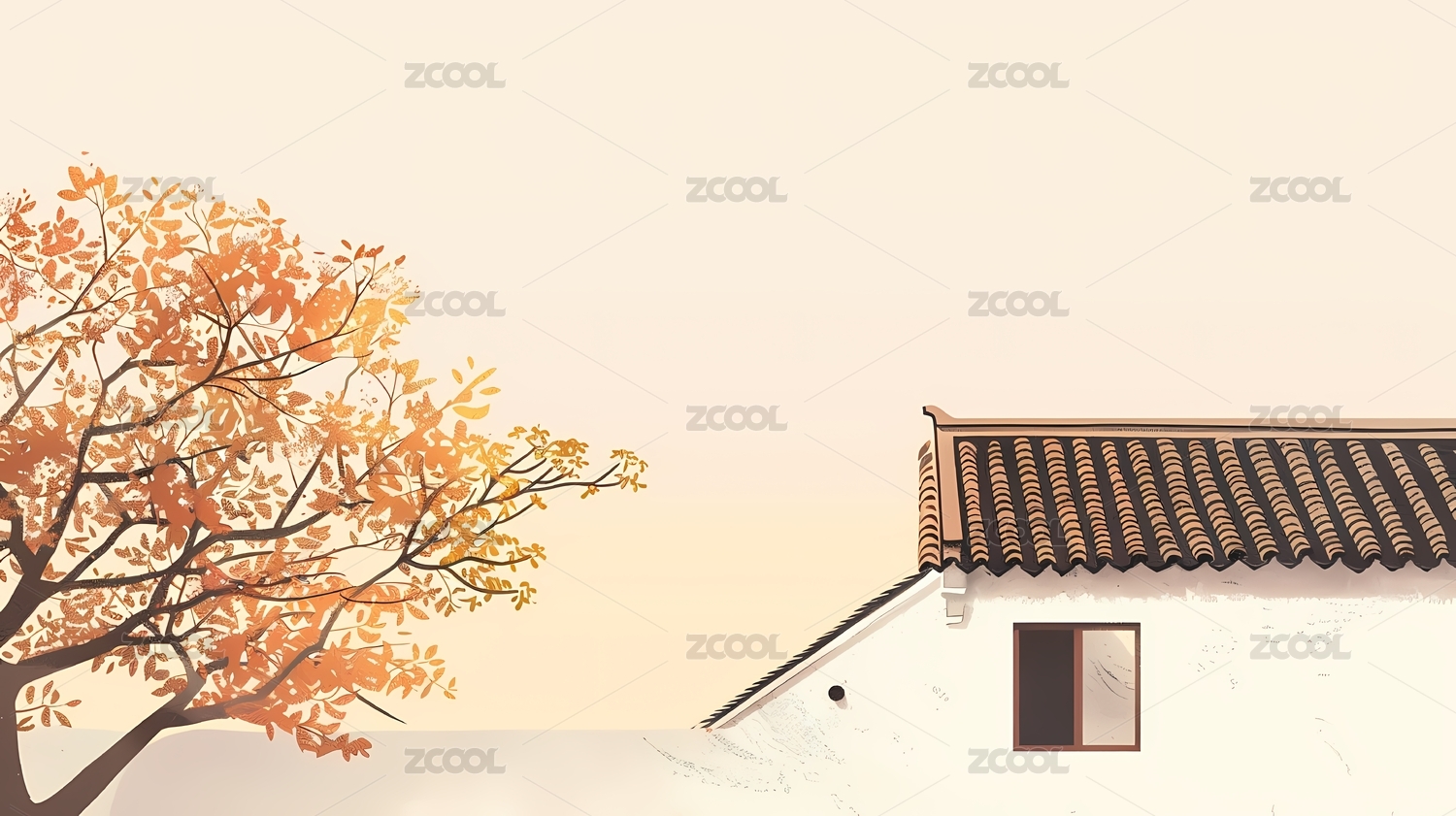 秋天黄色落叶背景下的中国传统古建筑马头墙