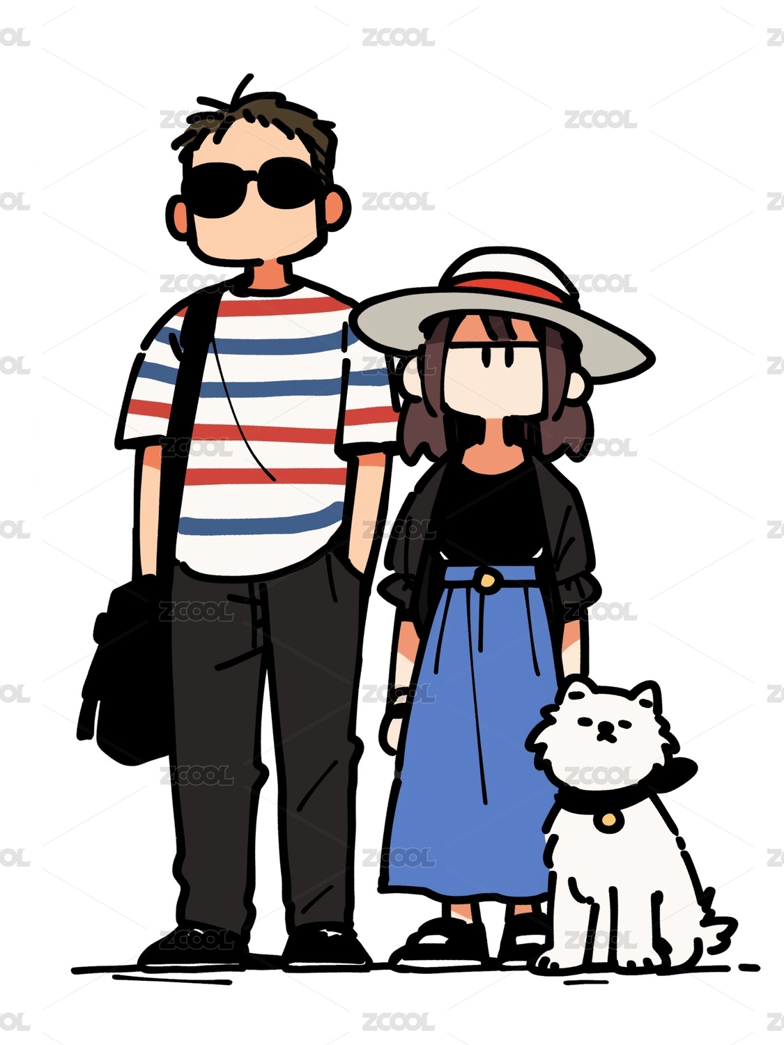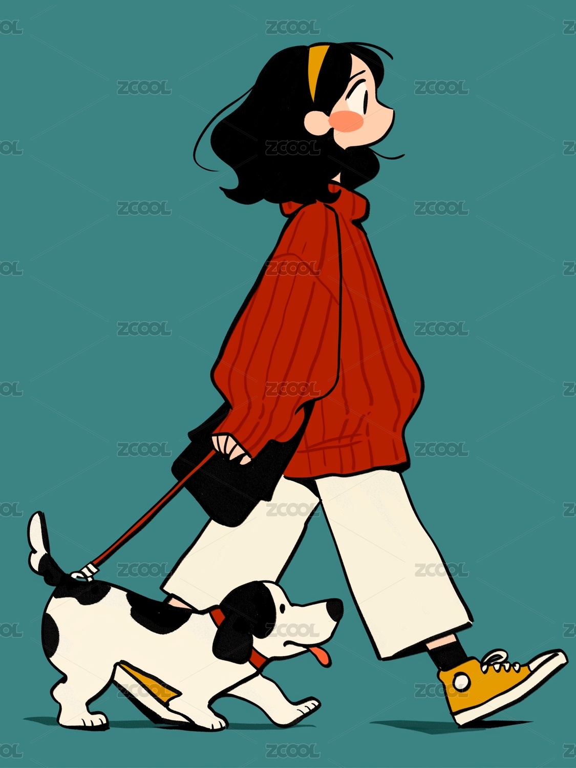 情侣,遛狗,插画,涂鸦风,素材,女生,男生