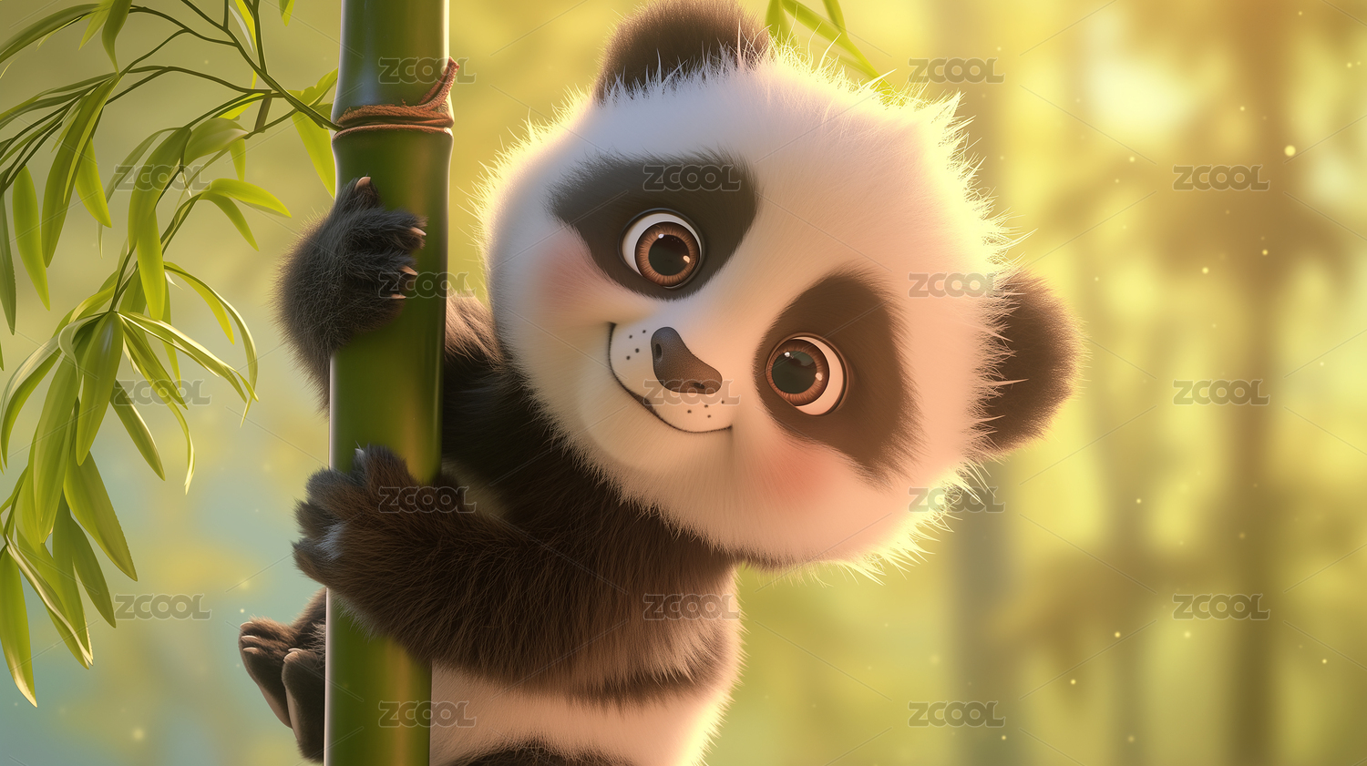 动物,写实,绘画,唯美,可爱,温馨,快乐,插画,AIGC202401,熊猫