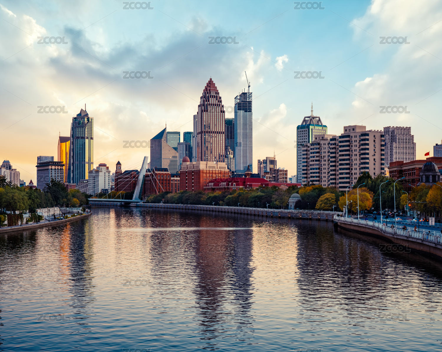 天津海河风景线沿岸小白楼商圈城市建筑风光