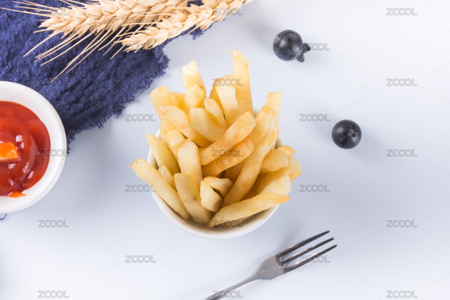 白背景西式小吃炸薯条
