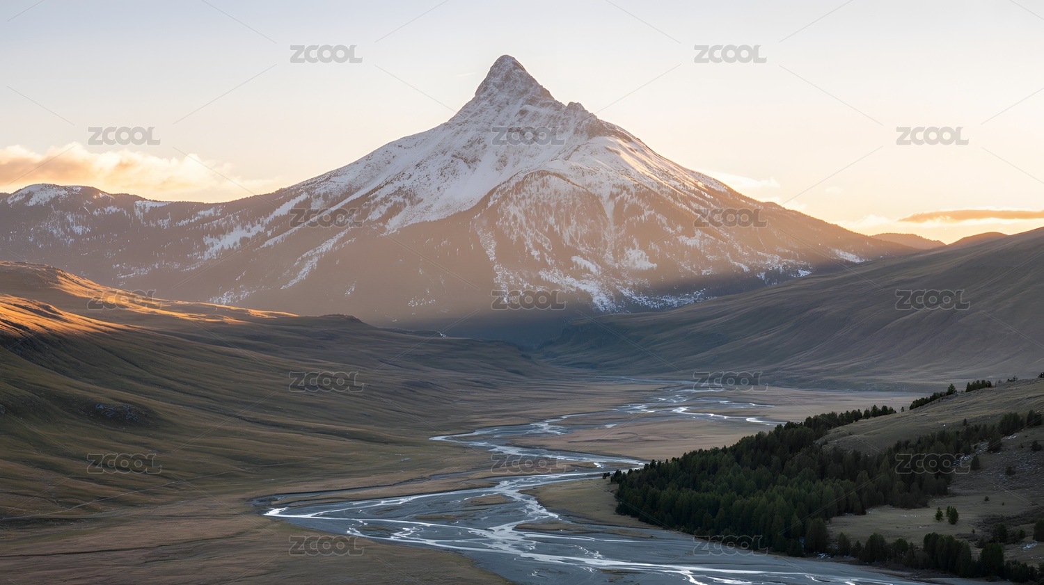 冰岛蝙蝠山黑山头极地雪山日照金山日落