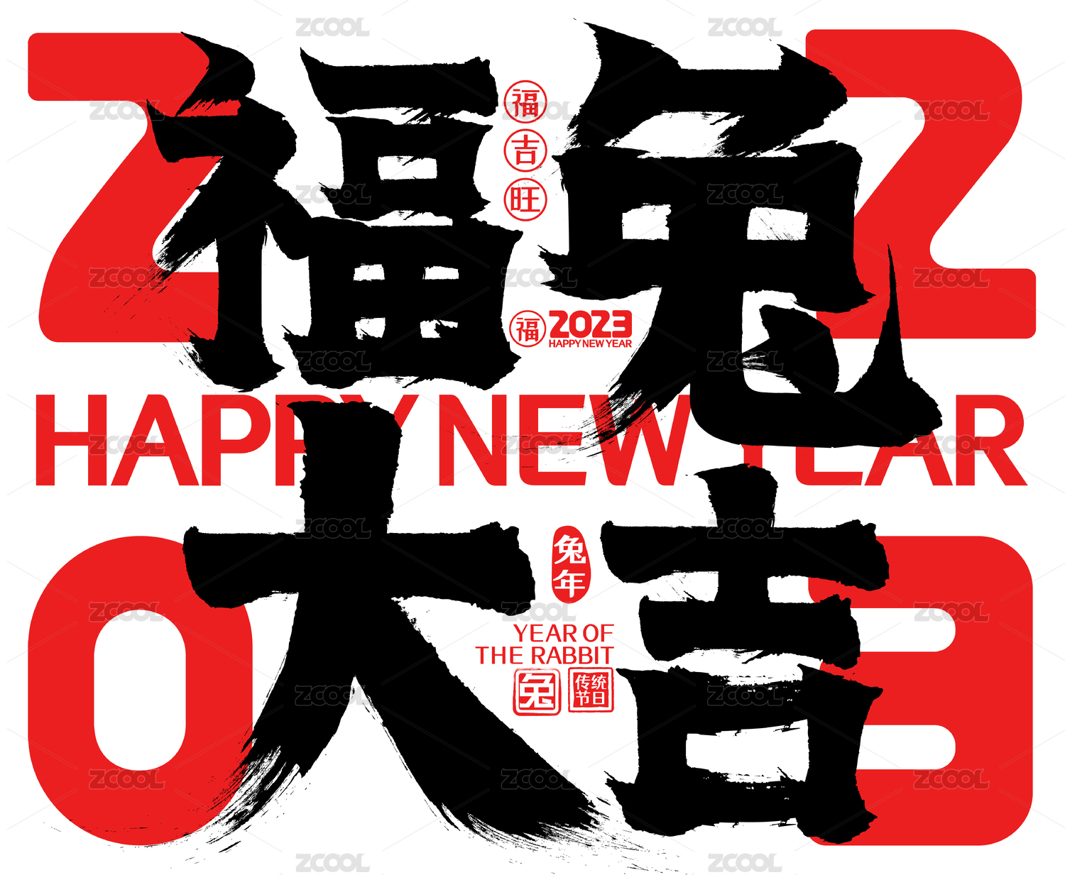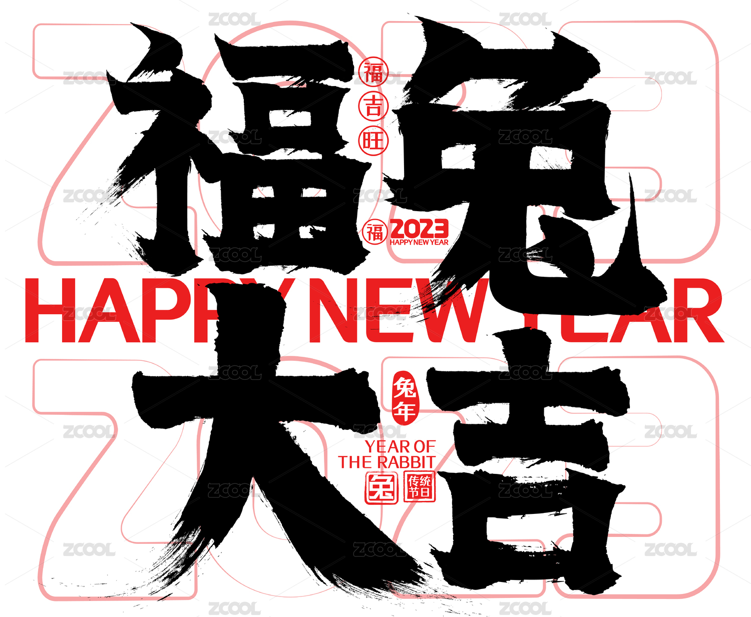 2023福兔大吉喜庆中国红兔年春节毛笔字