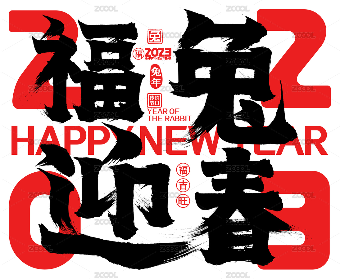 2023福兔迎新喜庆中国红兔年春节毛笔字