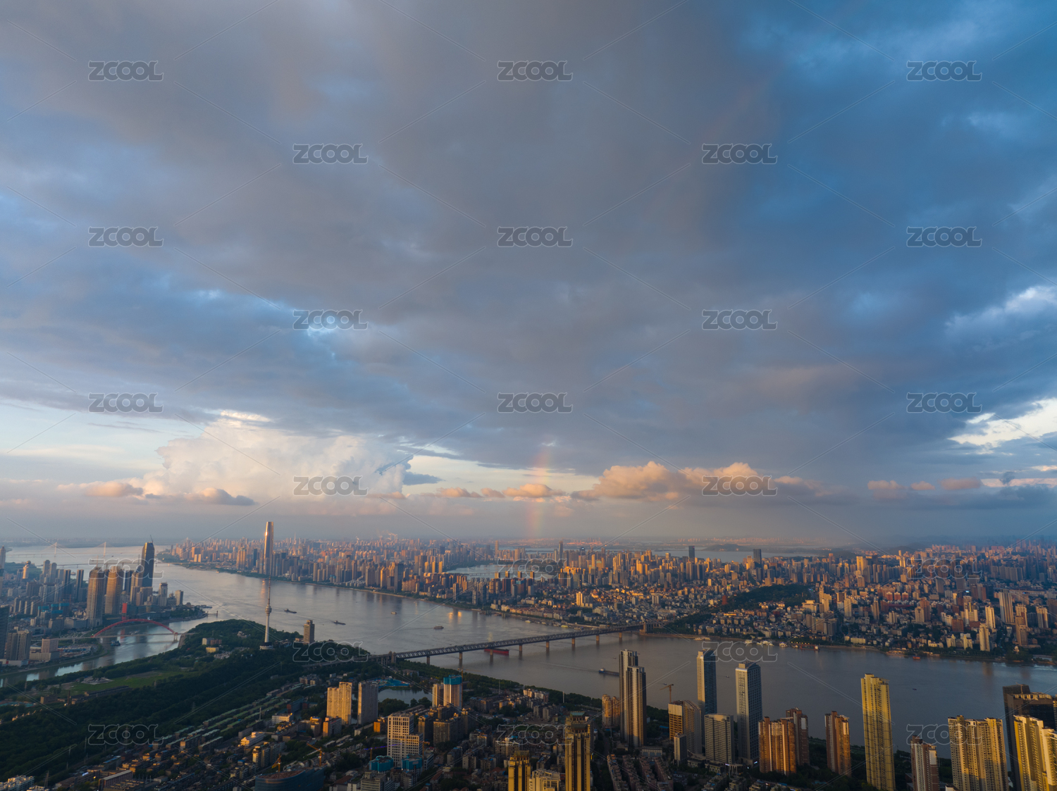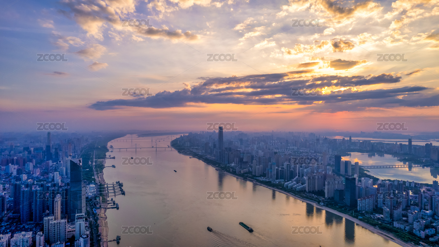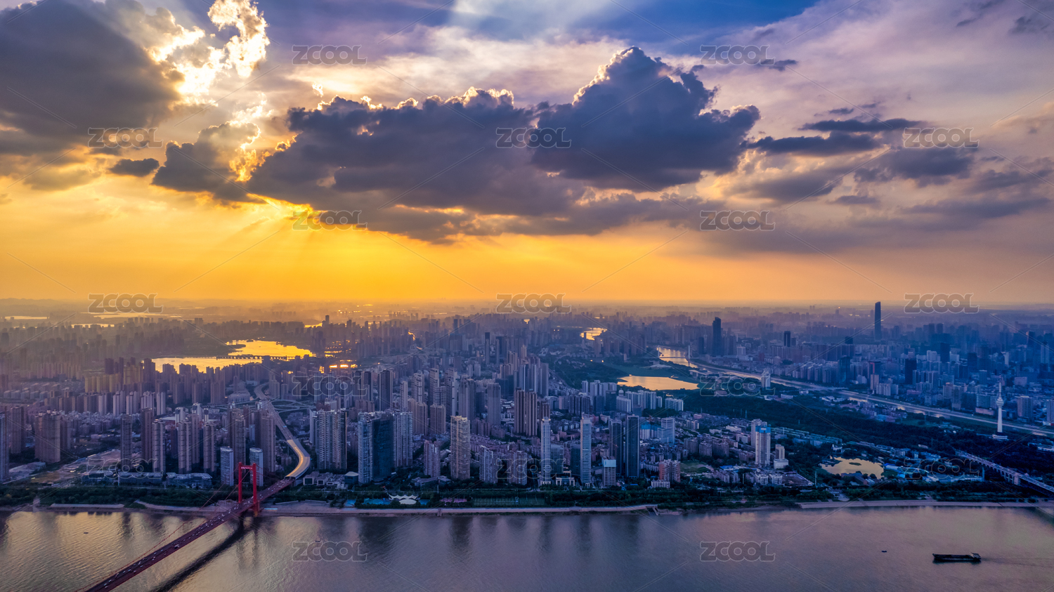 武汉,城市,城市风光,都市,傍晚,落日,晚霞,黄昏,航拍,城市天际线