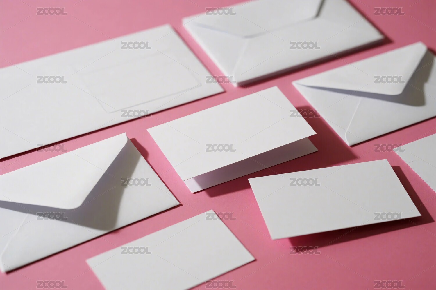放在木桌上的白色信封和白色空白信纸和钢笔