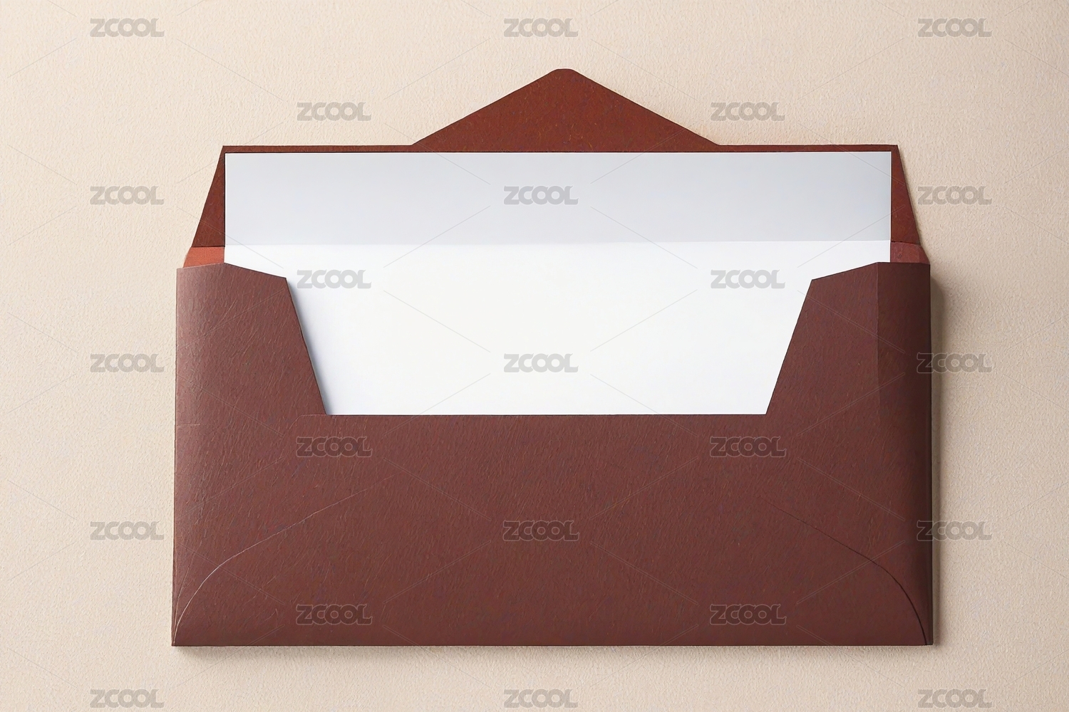放在木桌子上的牛皮纸信封和白色空白信纸