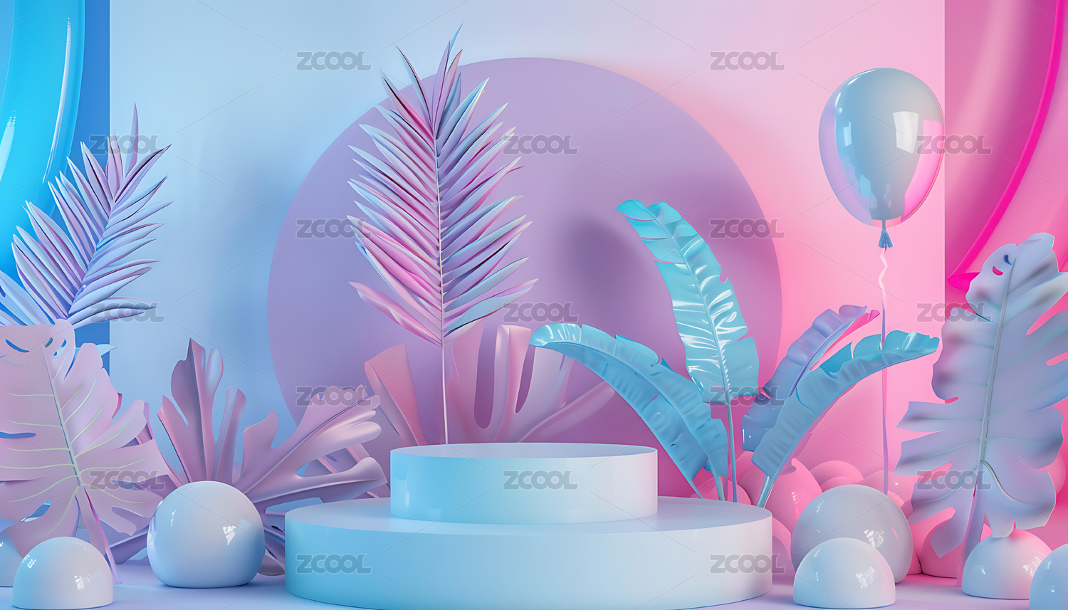 夏日,膨胀,植物,梦幻,多巴胺,糖果色,卡通,3d,c4d,清透