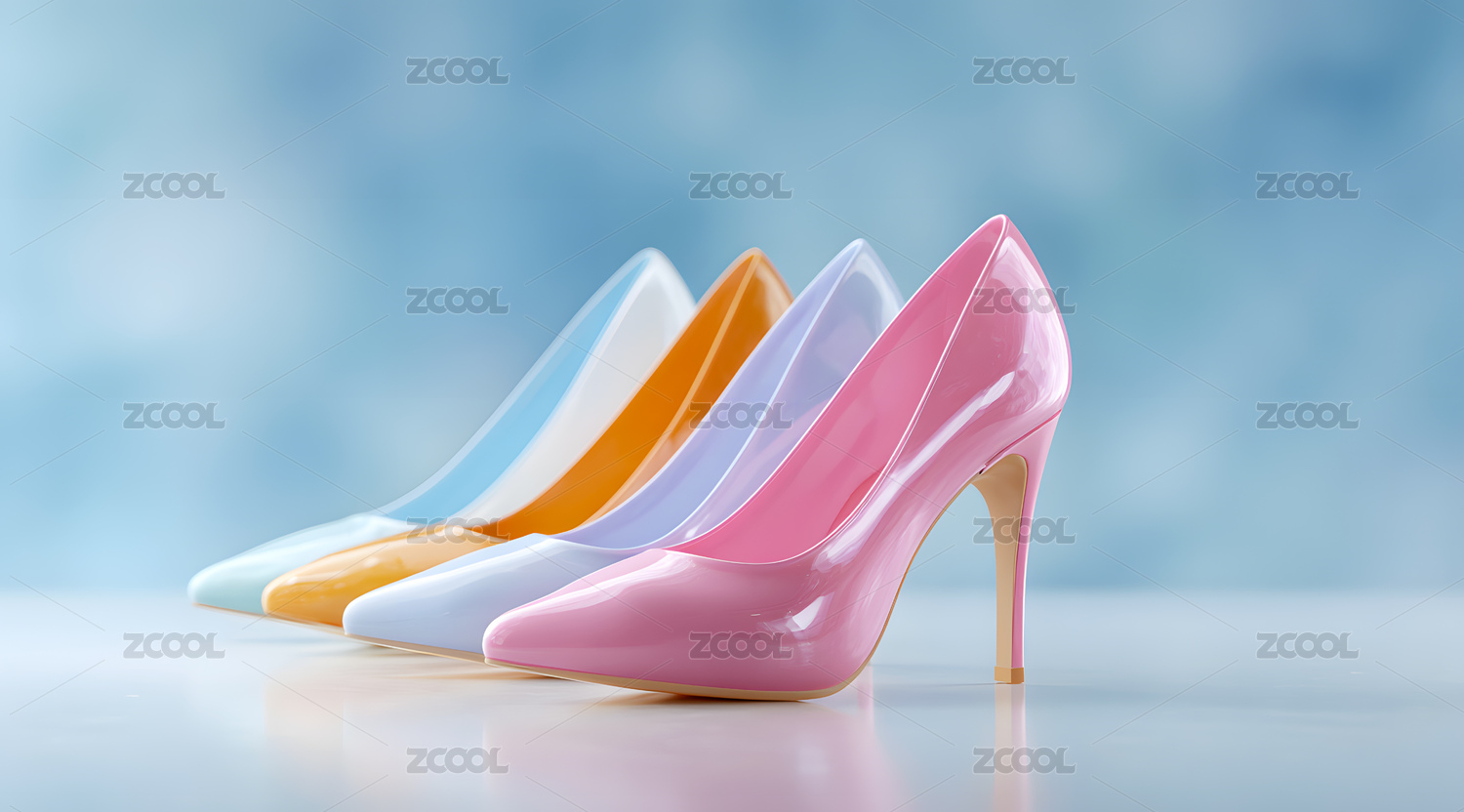 彩色背景上卡通高跟鞋