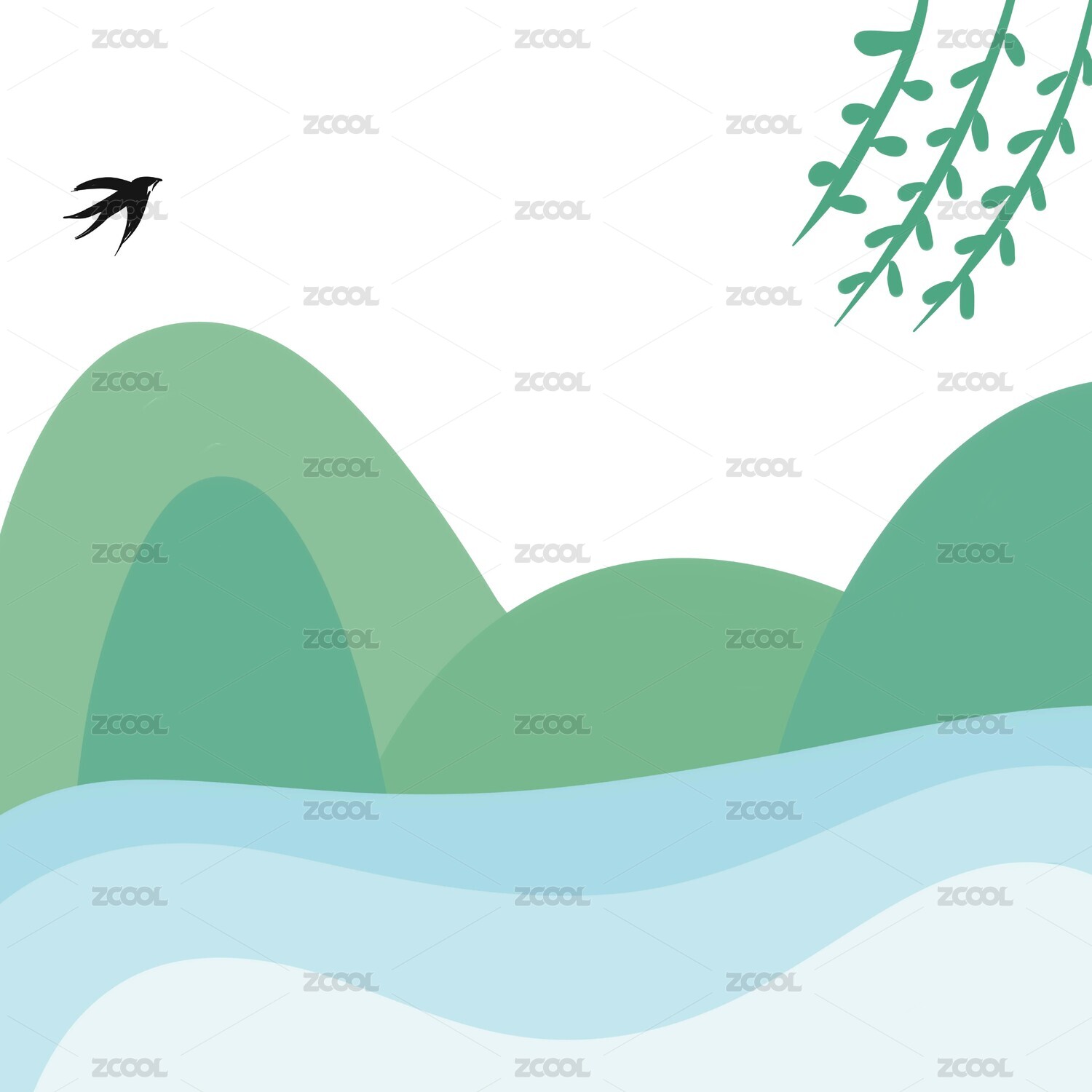 中国风,庭院,中式庭院,柳叶,柳条,山